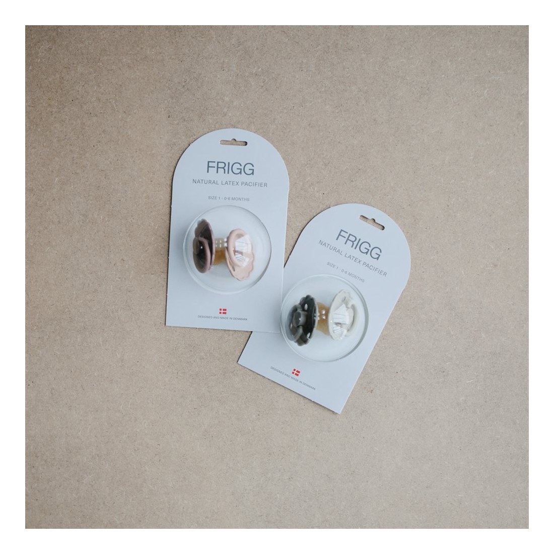 Οι πιπίλες FRIGG είναι σχεδιασμένες και κατασκευασμένες στη Δανία. Κάθε πιπίλα FRIGG υποβάλλεται σε ένα ευρύ φάσμα δοκιμών ασφαλείας με αποτέλεσμα την παραγωγή ειδικά μελετημένων προϊόντων, εξαιρετικής ποιότας. Ο σχεδιασμός τους βασίζεται στην ανατομία του στήθους μιας μητέρας, τόσο σε σχήμα όσο και σε υλικό. Η εξήγηση για αυτό είναι ότι όταν το παιδί πρόκειται να θηλάσει, η γλώσσα τυλίγεται γύρω από τη θηλή και δημιουργεί ένα κενό, το οποίο προκαλεί τη ροή του γάλακτος. Όταν το παιδί πιπιλάει μια στρογγυλή πιπίλα, κυλάει τη γλώσσα του γύρω της με τον ίδιο τρόπο με τον οποίο θηλάζει. Το στρογγυλό σχήμα προτείνεται από τους παιδιατρικούς χειροπράκτες και τα μαιευτήρες στη Δανία. Λεπτομέρειες: