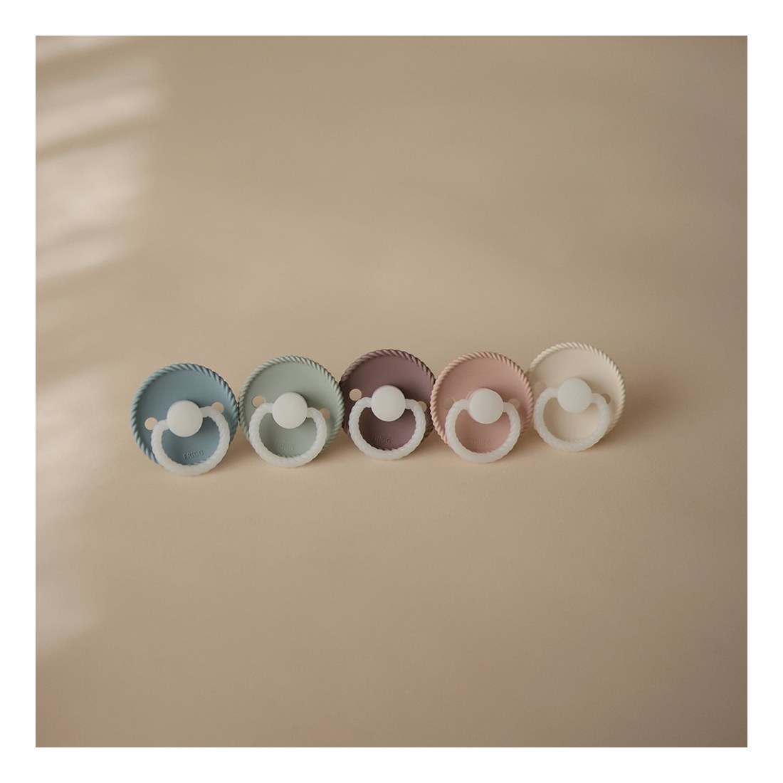 Οι πιπίλες FRIGG είναι σχεδιασμένες και κατασκευασμένες στη Δανία. Κάθε πιπίλα FRIGG υποβάλλεται σε ένα ευρύ φάσμα δοκιμών ασφαλείας με αποτέλεσμα την παραγωγή ειδικά μελετημένων προϊόντων, εξαιρετικής ποιότας. Ο σχεδιασμός τους βασίζεται στην ανατομία του στήθους μιας μητέρας, τόσο σε σχήμα όσο και σε υλικό. Η εξήγηση για αυτό είναι ότι όταν το παιδί πρόκειται να θηλάσει, η γλώσσα τυλίγεται γύρω από τη θηλή και δημιουργεί ένα κενό, το οποίο προκαλεί τη ροή του γάλακτος. Όταν το παιδί πιπιλάει μια στρογγυλή πιπίλα, κυλάει τη γλώσσα του γύρω της με τον ίδιο τρόπο με τον οποίο θηλάζει. Το στρογγυλό σχήμα προτείνεται από τους παιδιατρικούς χειροπράκτες και τα μαιευτήρες στη Δανία. Λεπτομέρειες: