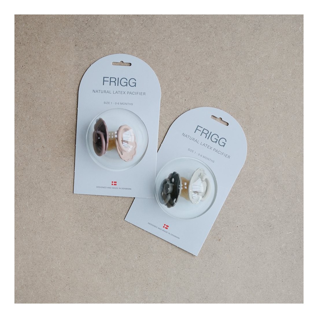 Οι πιπίλες FRIGG είναι σχεδιασμένες και κατασκευασμένες στη Δανία. Κάθε πιπίλα FRIGG υποβάλλεται σε ένα ευρύ φάσμα δοκιμών ασφαλείας με αποτέλεσμα την παραγωγή ειδικά μελετημένων προϊόντων, εξαιρετικής ποιότας. Ο σχεδιασμός τους βασίζεται στην ανατομία του στήθους μιας μητέρας, τόσο σε σχήμα όσο και σε υλικό. Η εξήγηση για αυτό είναι ότι όταν το παιδί πρόκειται να θηλάσει, η γλώσσα τυλίγεται γύρω από τη θηλή και δημιουργεί ένα κενό, το οποίο προκαλεί τη ροή του γάλακτος. Όταν το παιδί πιπιλάει μια στρογγυλή πιπίλα, κυλάει τη γλώσσα του γύρω της με τον ίδιο τρόπο με τον οποίο θηλάζει. Το στρογγυλό σχήμα προτείνεται από τους παιδιατρικούς χειροπράκτες και τα μαιευτήρες στη Δανία. Λεπτομέρειες: