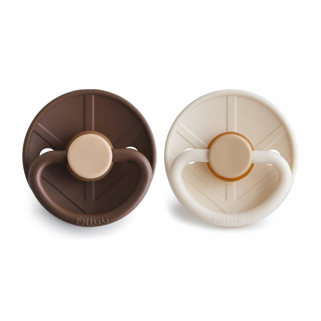 Οι πιπίλες FRIGG είναι σχεδιασμένες και κατασκευασμένες στη Δανία. Κάθε πιπίλα FRIGG υποβάλλεται σε ένα ευρύ φάσμα δοκιμών ασφαλείας με αποτέλεσμα την παραγωγή ειδικά μελετημένων προϊόντων, εξαιρετικής ποιότας. Ο σχεδιασμός τους βασίζεται στην ανατομία του στήθους μιας μητέρας, τόσο σε σχήμα όσο και σε υλικό. Η εξήγηση για αυτό είναι ότι όταν το παιδί πρόκειται να θηλάσει, η γλώσσα τυλίγεται γύρω από τη θηλή και δημιουργεί ένα κενό, το οποίο προκαλεί τη ροή του γάλακτος. Όταν το παιδί πιπιλάει μια στρογγυλή πιπίλα, κυλάει τη γλώσσα του γύρω της με τον ίδιο τρόπο με τον οποίο θηλάζει. Το στρογγυλό σχήμα προτείνεται από τους παιδιατρικούς χειροπράκτες και τα μαιευτήρες στη Δανία. Λεπτομέρειες: Οι πιπίλες ασφαλίζουν με ένα σύστημα click-lock®. Η θυλή της πιπίλας είναι από υλικό SilkySoft™. Υλικό βάσης: Πολυπροπυλένιο (PP). Πρότυπο ασφαλείας: Δοκιμή EN1400 + A2. Υλικό θηλής: 100% φυσικό καουτσούκ. Μέτρο θηλής: 27 mm. Προτεινόμενη ηλικία: 0-6 μηνών. Οδηγίες περιποίησης προϊόντος: Μουλιάστε σε καυτό νερό την πιπίλα σας για 3 με 5 λεπτά. (Μην την αφήνετε για περισσότερο από 5 λεπτά.) Έπειτα αφήστε την να στεγνώσει σε μια επίπεδη επιφάνεια. Δεν είναι κατάλληλη για χρήση σε αποστειρωτές, φούρνους μικροκυμάτων ή πλυντήρια πιάτων. Για βέλτιστη ασφάλεια και υγιεινή, συνιστούμε την αλλαγή της πιπίλας μετά από 1-2 μήνες εκτεταμένης χρήσης. Ελέγχετε πάντα την πιπίλα πριν τη χρήση και πετάξτε την με τα πρώτα σημάδια βλάβης ή φθοράς.