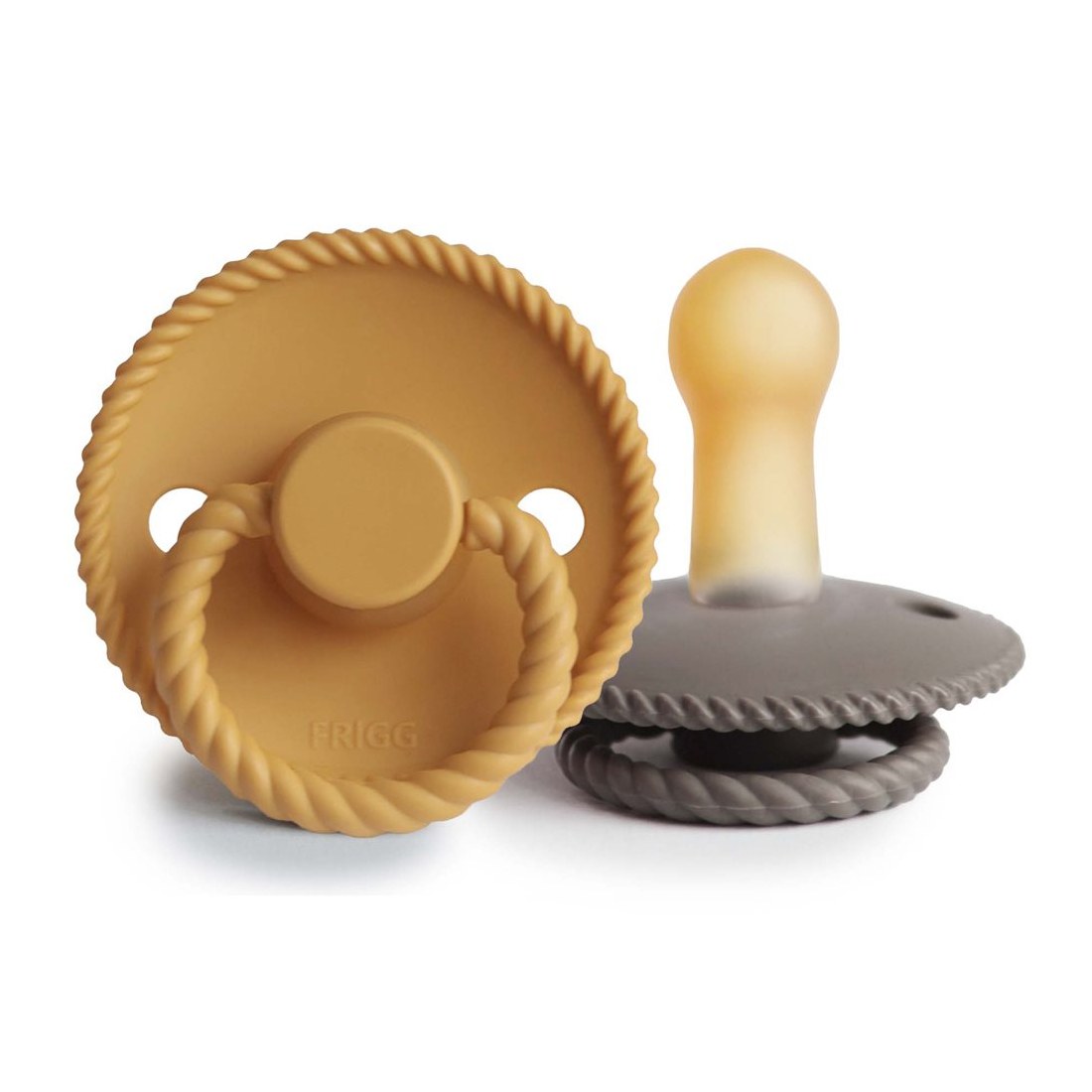 Σετ 2 Πιπίλες Latex FRIGG Rope Honey Gold/Portobello 6-18 Μηνών