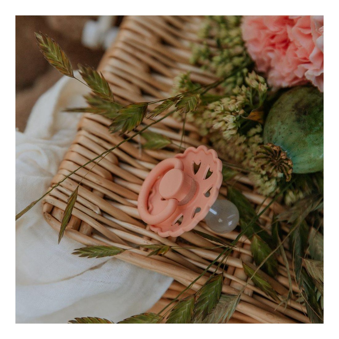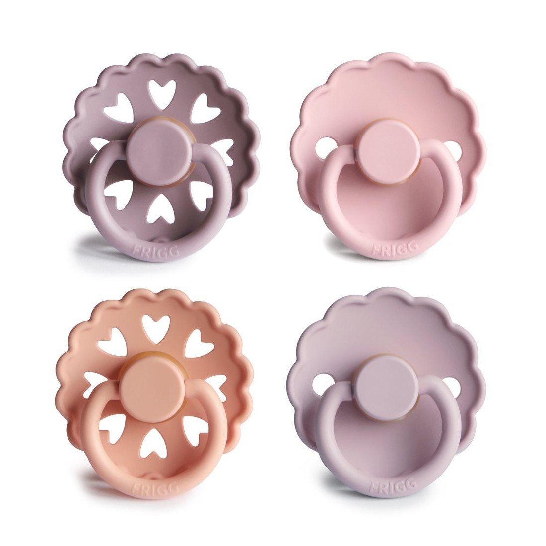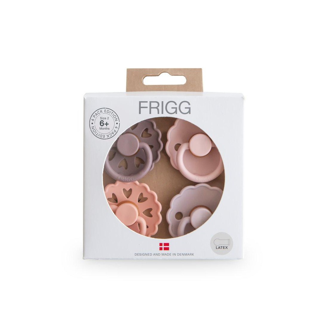 Οι πιπίλες FRIGG είναι σχεδιασμένες και κατασκευασμένες στη Δανία. Κάθε πιπίλα FRIGG υποβάλλεται σε ένα ευρύ φάσμα δοκιμών ασφαλείας με αποτέλεσμα την παραγωγή ειδικά μελετημένων προϊόντων, εξαιρετικής ποιότας. Ο σχεδιασμός τους βασίζεται στην ανατομία του στήθους μιας μητέρας, τόσο σε σχήμα όσο και σε υλικό. Η εξήγηση για αυτό είναι ότι όταν το παιδί πρόκειται να θηλάσει, η γλώσσα τυλίγεται γύρω από τη θηλή και δημιουργεί ένα κενό, το οποίο προκαλεί τη ροή του γάλακτος. Όταν το παιδί πιπιλάει μια στρογγυλή πιπίλα, κυλάει τη γλώσσα του γύρω της με τον ίδιο τρόπο με τον οποίο θηλάζει. Το στρογγυλό σχήμα προτείνεται από τους παιδιατρικούς χειροπράκτες και τα μαιευτήρες στη Δανία. Το σετ αποτελείται από 4 πιπίλες διαφορετικών συλλογών της FRIGG. Αποτελεί το ιδανικό δώρο για όλους τους νέους γονείς! Λεπτομέρειες: Οι πιπίλες ασφαλίζουν με ένα σύστημα click-lock®. Η θυλή της πιπίλας είναι από υλικό SilkySoft™. Υλικό βάσης: Πολυπροπυλένιο (PP). Πρότυπο ασφαλείας: Δοκιμή EN1400 + A2. Υλικό θηλής: 100% φυσικό καουτσούκ. Μέτρο θηλής: 30 mm. Προτεινόμενη ηλικία: 6-18 μηνών. Οδηγίες περιποίησης προϊόντος: Μουλιάστε σε καυτό νερό την πιπίλα σας για 3 με 5 λεπτά. (Μην την αφήνετε για περισσότερο από 5 λεπτά.) Έπειτα αφήστε την να στεγνώσει σε μια επίπεδη επιφάνεια. Δεν είναι κατάλληλη για χρήση σε αποστειρωτές, φούρνους μικροκυμάτων ή πλυντήρια πιάτων. Για βέλτιστη ασφάλεια και υγιεινή, συνιστούμε την αλλαγή της πιπίλας μετά από 1-2 μήνες εκτεταμένης χρήσης. Ελέγχετε πάντα την πιπίλα πριν τη χρήση και πετάξτε την με τα πρώτα σημάδια βλάβης ή φθοράς.