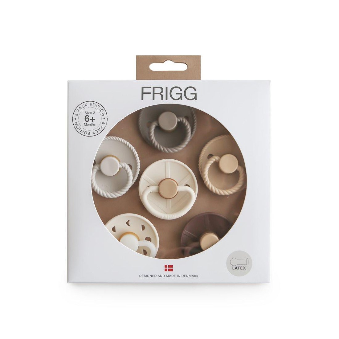Το σετ με τις 6 πιπίλες αποτελείται από 5 πιπίλες διαφορετικών συλλογών της FRIGG και από μια της νυχτερινής συλλογής από πιπίλες που φωσφορίζουν στο σκοτάδι. Αποτελεί το ιδανικό δώρο για όλους τους νέους γονείς!