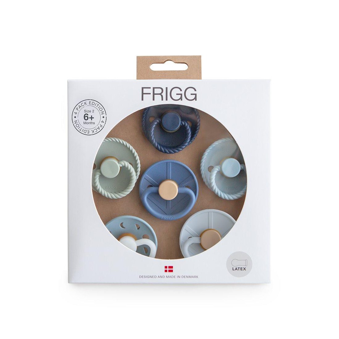 Οι πιπίλες FRIGG είναι σχεδιασμένες και κατασκευασμένες στη Δανία. Κάθε πιπίλα FRIGG υποβάλλεται σε ένα ευρύ φάσμα δοκιμών ασφαλείας με αποτέλεσμα την παραγωγή ειδικά μελετημένων προϊόντων, εξαιρετικής ποιότας. Ο σχεδιασμός τους βασίζεται στην ανατομία του στήθους μιας μητέρας, τόσο σε σχήμα όσο και σε υλικό. Η εξήγηση για αυτό είναι ότι όταν το παιδί πρόκειται να θηλάσει, η γλώσσα τυλίγεται γύρω από τη θηλή και δημιουργεί ένα κενό, το οποίο προκαλεί τη ροή του γάλακτος. Όταν το παιδί πιπιλάει μια στρογγυλή πιπίλα, κυλάει τη γλώσσα του γύρω της με τον ίδιο τρόπο με τον οποίο θηλάζει. Το στρογγυλό σχήμα προτείνεται από τους παιδιατρικούς χειροπράκτες και τα μαιευτήρες στη Δανία. Το σετ με τις 6 πιπίλες αποτελείται από 5 πιπίλες διαφορετικών συλλογών της FRIGG και από μια της νυχτερινής συλλογής από πιπίλες που φωσφορίζουν στο σκοτάδι. Αποτελεί το ιδανικό δώρο για όλους τους νέους γονείς! Λεπτομέρειες: Οι πιπίλες ασφαλίζουν με ένα σύστημα click-lock®. Η θυλή της πιπίλας είναι από υλικό SilkySoft™. Υλικό βάσης: Πολυπροπυλένιο (PP). Πρότυπο ασφαλείας: Δοκιμή EN1400 + A2. Υλικό θηλής: 100% φυσικό καουτσούκ. Μέτρο θηλής: 27 mm. Προτεινόμενη ηλικία: 0-6 μηνών. Νυχτερινή λάμψη (1 πιπίλα). Το χερούλι της νυχτερινής πιπίλας φωσφορίζει στο σκοτάδι ώστε να την εντοπίζετε με ευκολία. Αφήστε την σε φωτεινή πηγή για λίγα λεπτά και χρησιμοποιήστε την στον βραδινό ύπνο του μωρού σας. Οδηγίες περιποίησης προϊόντος: Μουλιάστε σε καυτό νερό την πιπίλα σας για 3 με 5 λεπτά. (Μην την αφήνετε για περισσότερο από 5 λεπτά.) Έπειτα αφήστε την να στεγνώσει σε μια επίπεδη επιφάνεια. Δεν είναι κατάλληλη για χρήση σε αποστειρωτές, φούρνους μικροκυμάτων ή πλυντήρια πιάτων. Για βέλτιστη ασφάλεια και υγιεινή, συνιστούμε την αλλαγή της πιπίλας μετά από 1-2 μήνες εκτεταμένης χρήσης. Ελέγχετε πάντα την πιπίλα πριν τη χρήση και πετάξτε την με τα πρώτα σημάδια βλάβης ή φθοράς.