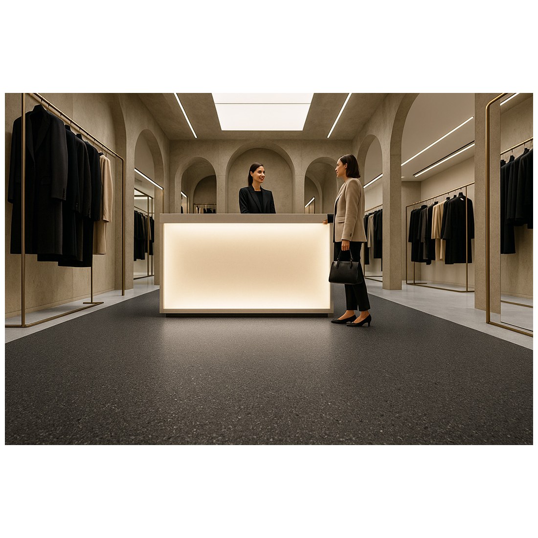 To Τitan ειναι πλαστικο δαπεδο σε ρολα φαρδος 4 μετρων με πολυ ευκολη τοποθετηση. Το ανθεκτικο φιλμ προστασιας του παχους  0,60mm το καθιστα καταλληλο για επαγγελματικους και βιομηχανικους χωρους .Εξαιρετικα πρακτικο :αντεχει την σκληρη χρηση και καταπονηση απο χτυπηματα και τροχηλατα πασης φυσης και μπορει να καθαριστει ακομη και με βαρια καθαριστικα.Διατιθεται σε μοντερνες οψεις ξυλου με φαρδια σανιδα καθως και σε χρωματισμους γρανιτη.