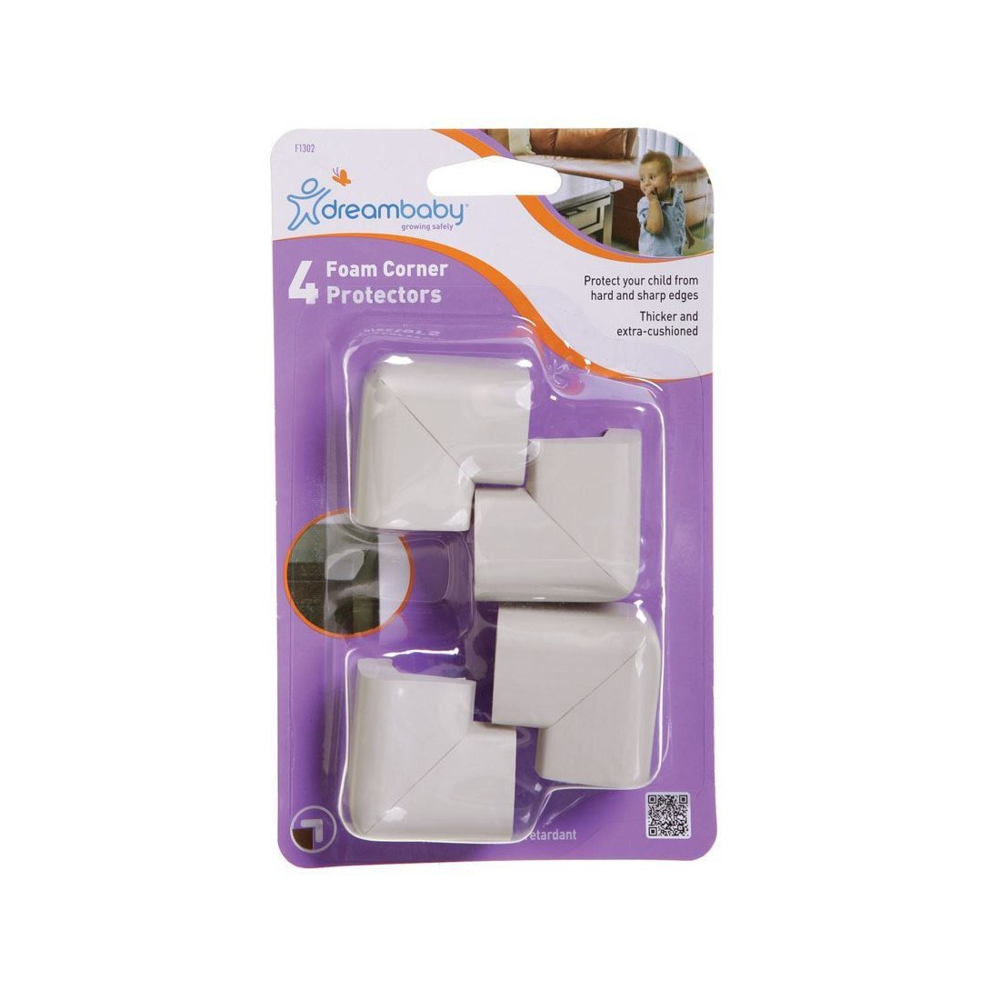 Αφρώδη προστατευτικά για γωνίες Dreambaby® 4 τεμάχια Τα προστατευτικά γωνιών βοηθούν στην προστασία των παιδιών από δυσάρεστα ατυχήματα και τραυματισμούς, που μπορεί να προκύψουν από την πτώση σε μια σκληρή, αιχμηρή γωνία πάγκου, τραπεζιού ή άλλου επίπλου. Εύκολη εγκατάσταση και αφαίρεση. Η κολλητική ταινία προσαρτά τα προστατευτικά σε όλα τα είδη επίπλων, χωρίς να προκαλεί ζημιά ή σημάδια. Ιδανικά για ράφια και άλλα γυάλινα έπιπλα, καθώς και τραπέζια ή γραφεία.