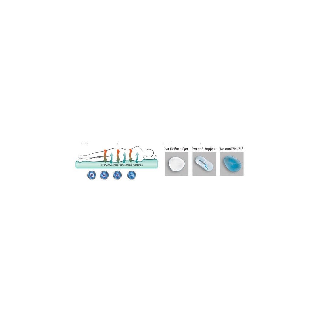 Εξαιρετικά απαλό αδιάβροχο προστατευτικό κάλυμμα στρώματος με εξαιρετική απορρόφηση υγρασίας για ρύθμιση της θερμοκρασίας του σώματος, από 100% φυσική ίνα ευκαλύπτου Tencel. Υποαλλεργικό, αντιβακτηριακό, με προστασία από τα ακάρεα.