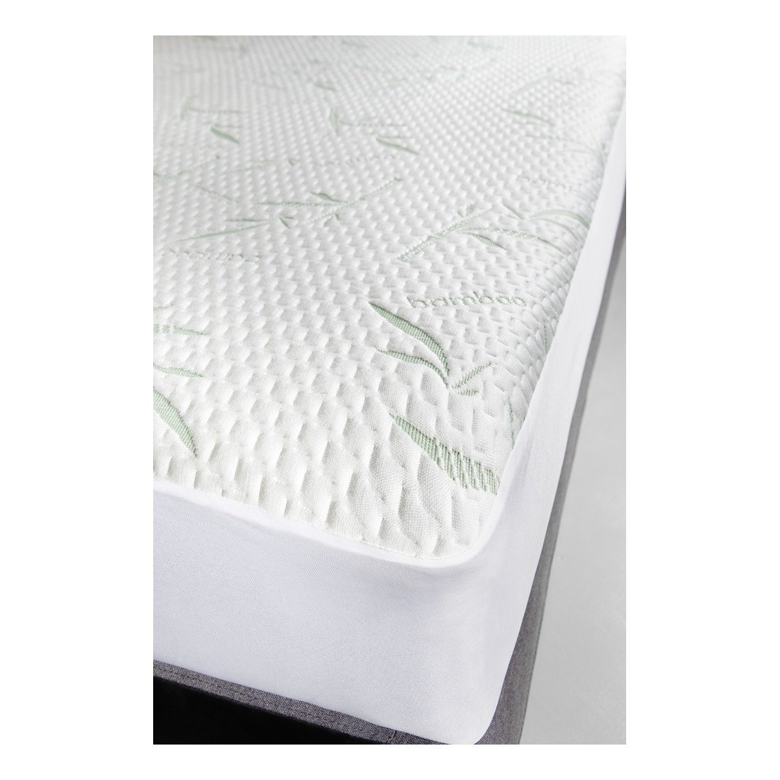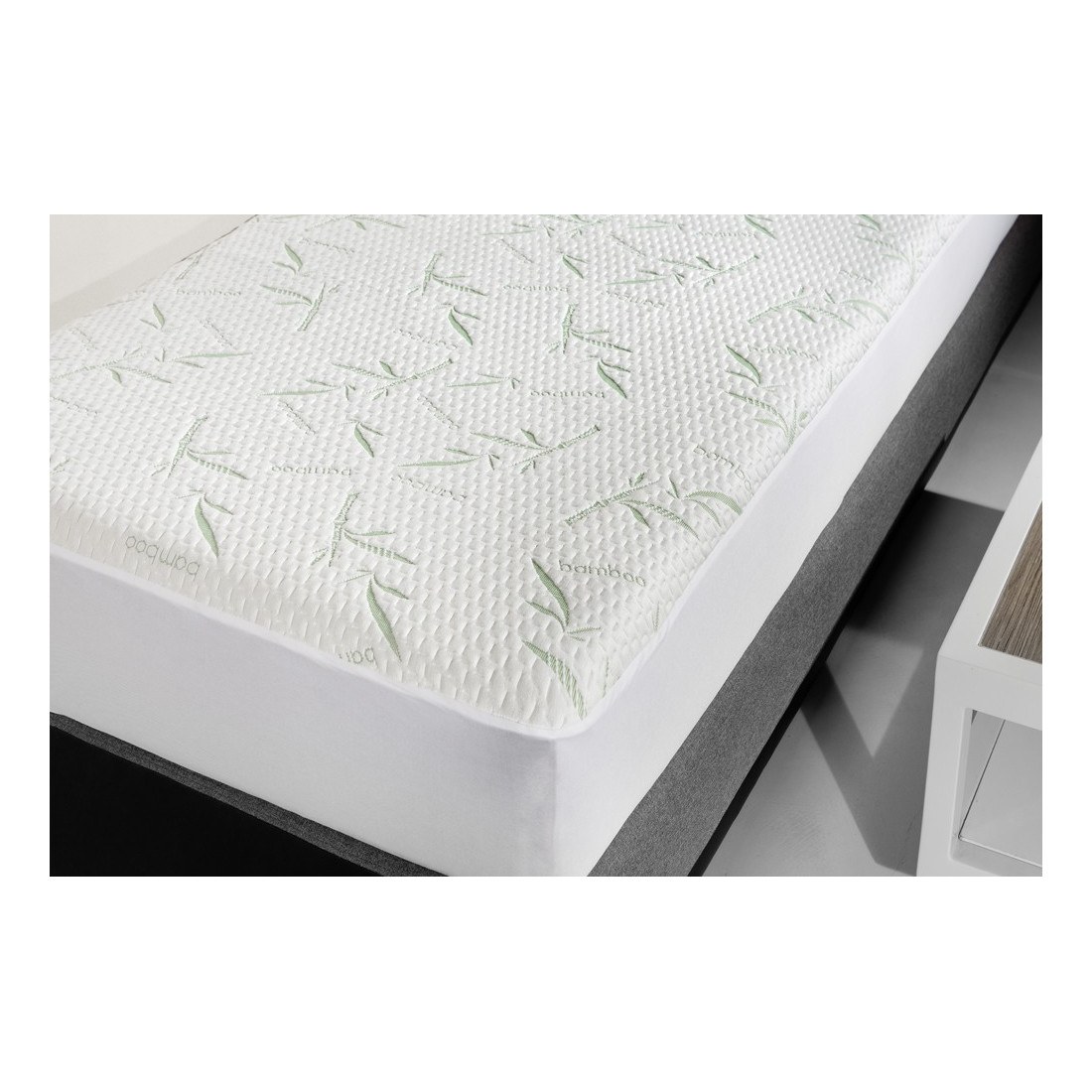 Αδιάβροχο προστατευτικό κάλυμμα στρώματος από 50% Bamboo, 50% Polyester και βάση από ειδική, πλήρως αδιάβροχη μεμβράνη PU που εξασφαλίζει στεγνό και άνετο ύπνο. Υποαλλεργικό και αντιβακτηριακό.