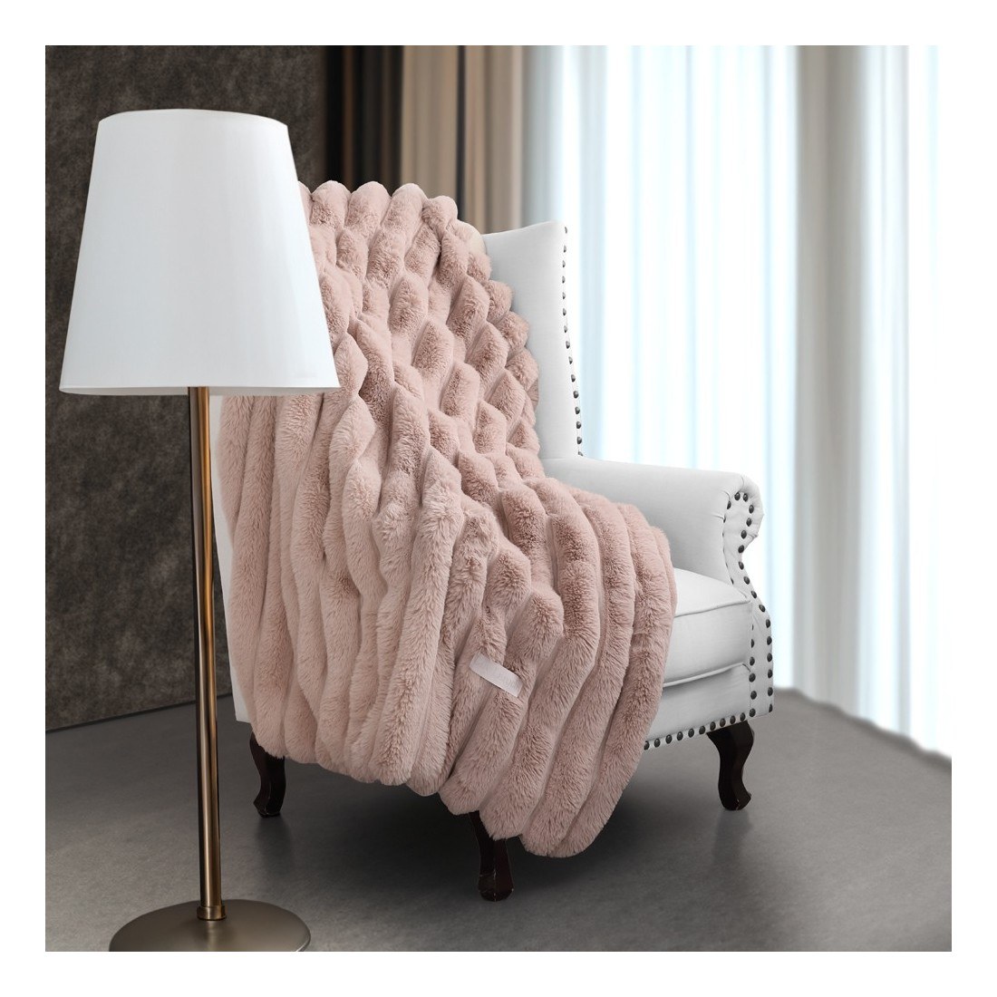 Σετ ριχτάρι γούνινο διακοσμητικό και μαξιλαροθήκη διακόσμησης Guy Laroche st. moritz old pink 120x160