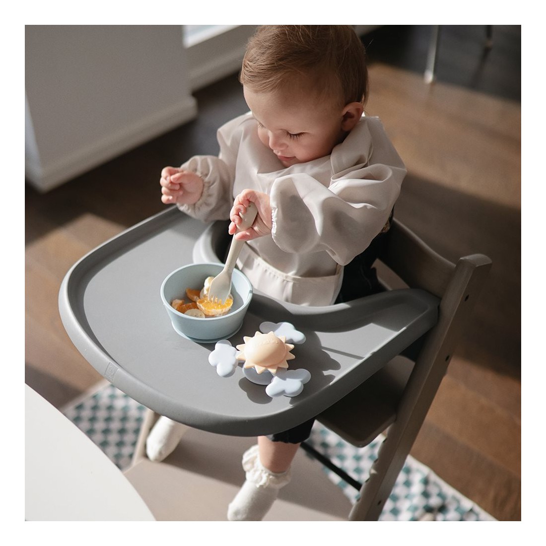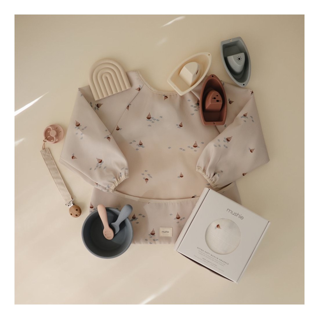 Μια μακρυμάνικη σαλιάρα από τη Mushie για γεύματα χωρίς λερώματα! Είναι από αδιάβροχο υλικό και διαθέτει μια ευρύχωρη τσέπη που συλλέγει εύκολα τα υπολείμματα φαγητού που πέφτουν από το πιάτο και αποτρέπει τη δημιουργία ακαταστασίας στο πάτωμα, τραπέζι ή στα ρούχα. Η σαλιάρα έχει κλείσιμο με βέλκρο στο πίσω μέρος του λαιμού για άνετη εφαρμογή. Το μέγεθος είναι κατάλληλο για παιδιά ηλικίας 6-24 μηνών. Καθαρίζεται εύκολα με ένα πανάκι, αλλά είναι επίσης απολύτως ασφαλής για πλύσιμο στο πλυντήριο σε χαμηλή θερμοκρασία 30ºC. Υλικό: πολυεστέρας και βαμβακερή επένδυση Μην στεγνώνετε στο στεγνωτήριο, μην χρησιμοποιείτε λευκαντικά, μην σιδερώνετε και μην καθαρίζετε με στεγνό καθάρισμα. Απλώστε σε επίπεδη επιφάνεια για να στεγνώσει.