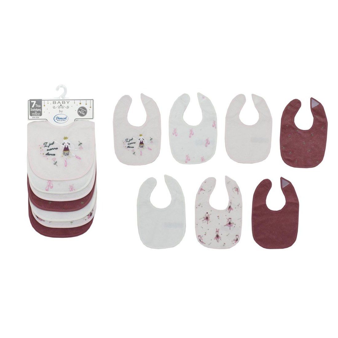 Σαλιάρα με Velcro Dimcol με Αδιάβροχη Επένδυση Σετ 7 Τεμ- Ballerina 07 30X20 White-Pink