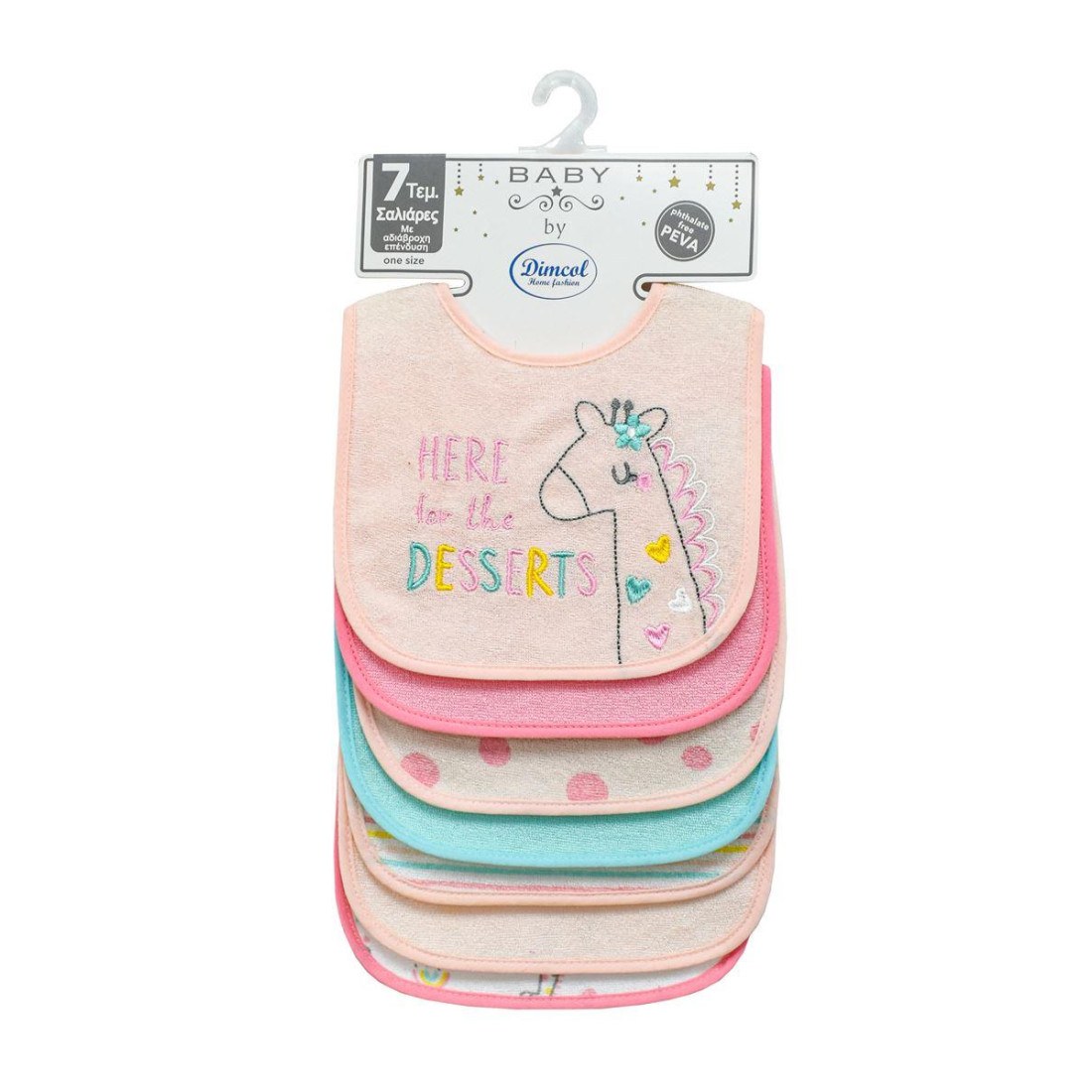 Σαλιάρα με Velcro Dimcol με Αδιάβροχη Επένδυση Σετ 7 Τεμ- Giraffe 20 30x20 Pink