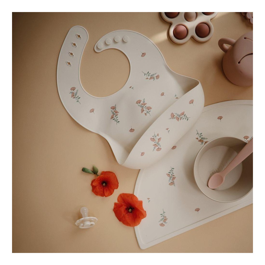 Σαλιάρα Σιλικόνης Pink Flowers - Mushie
