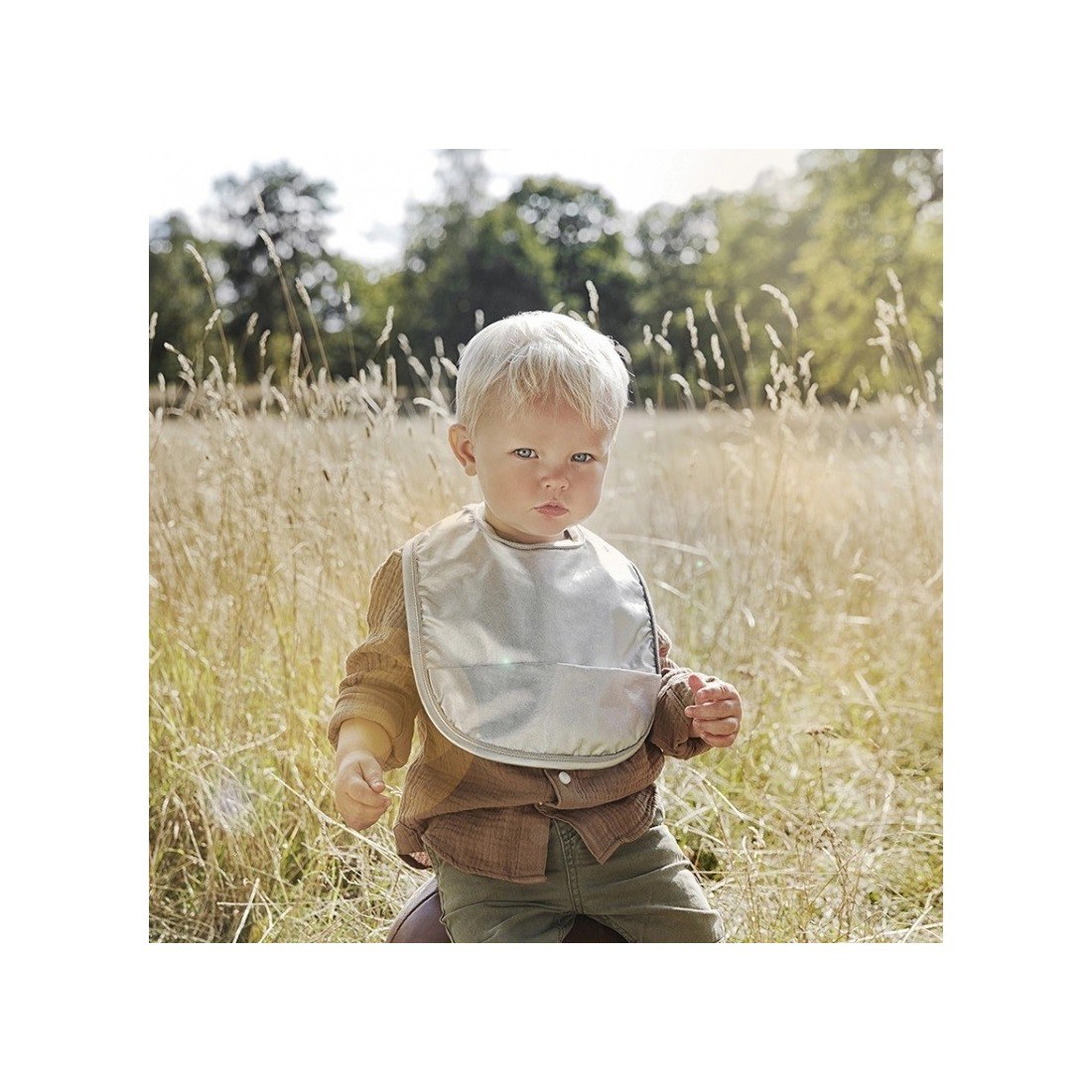 Η ευρεία εφαρμογή καλύπτει τόσο τους ώμους όσο και το στήθος, ενώ η μπροστινή τσέπη προλαβαίνει όλες τις διαρροές ή τα ψίχουλα, με αποτέλεσμα να μειώνεται ο καθαρισμός του δαπέδου.