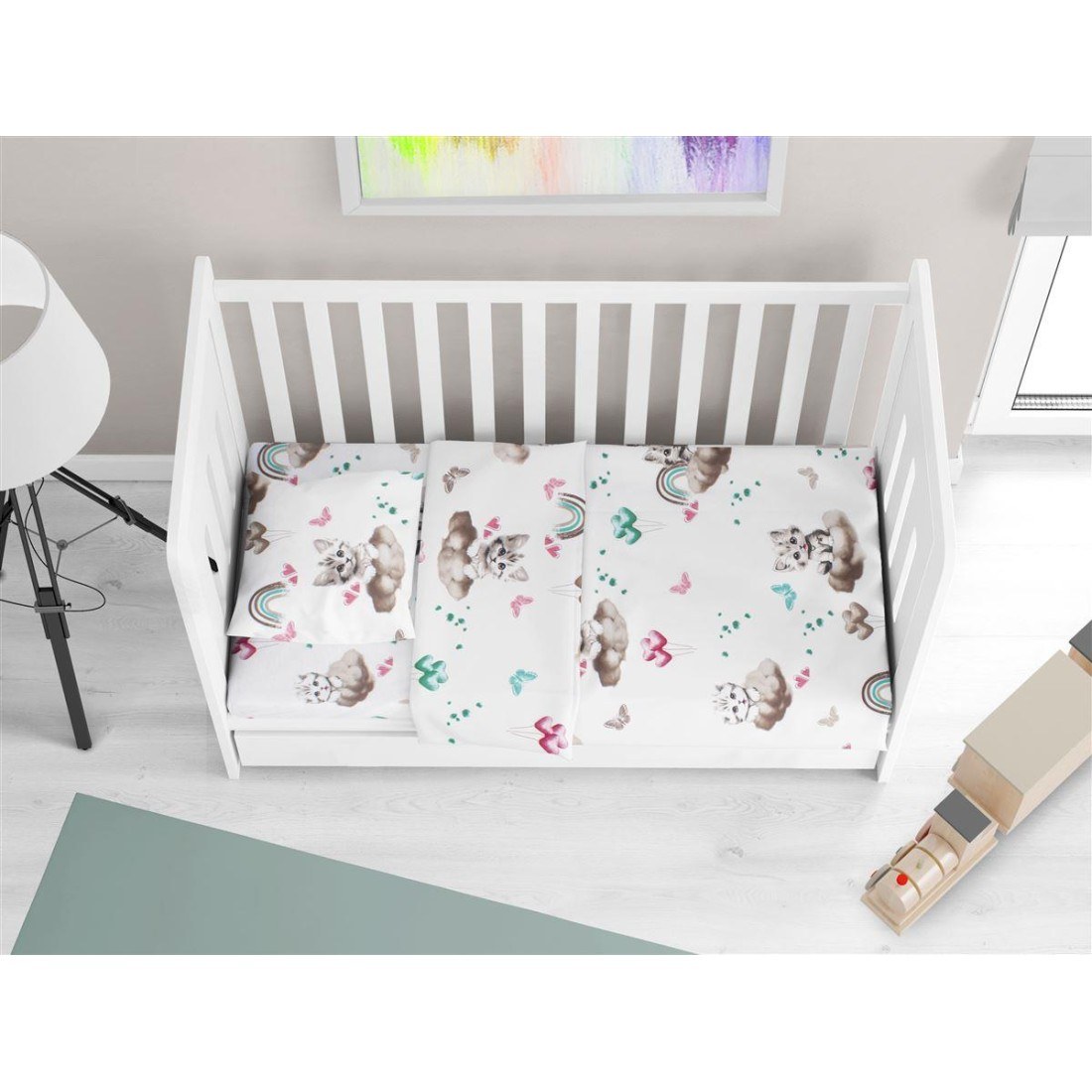 Βρεφικό κατωσέντονο κούνιας διαστάσεων 70Χ140Χ15 cm με λάστιχο. 1 τεμ. Προσφέρει τέλεια εφαρμογή στη κούνια του μωρού. Κατασκευασμένο από απαλό 100% βαμβακερό ύφασμα. 144 Κλωστών. σε χαρούμενα χρώματα με μοντέρνες βρεφικές παραστάσεις για τη κούνια του μωρού σας. Κατασκευάζεται στην Ελλάδα. Συσκευασία Polybag.