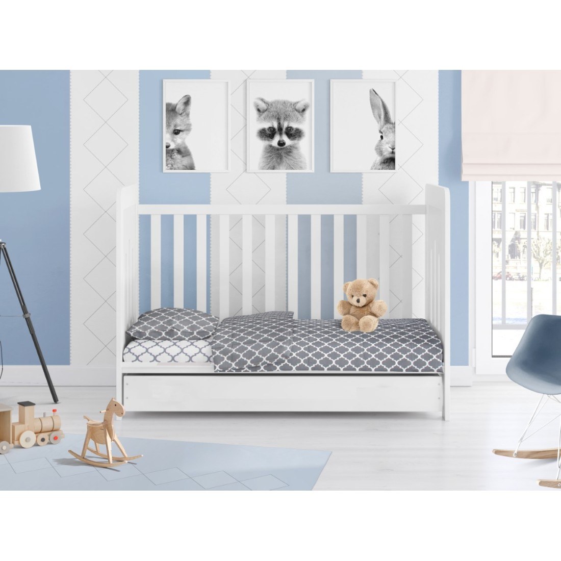 Σετ 3 τεμαχίων που περιέχει: Βρεφικά Σεντονάκια 120Χ160 κούνιας 2 τεμ. και 1 τεμ Μαξιλαροθηκη 35Χ45.Ύφασμα βαμβακι 100% TC 144 Εμπριμέ με χαρούμενα χρώματα και παραστάσεις-Συσκευασία Δώρου Κουτί Πολυτελείας