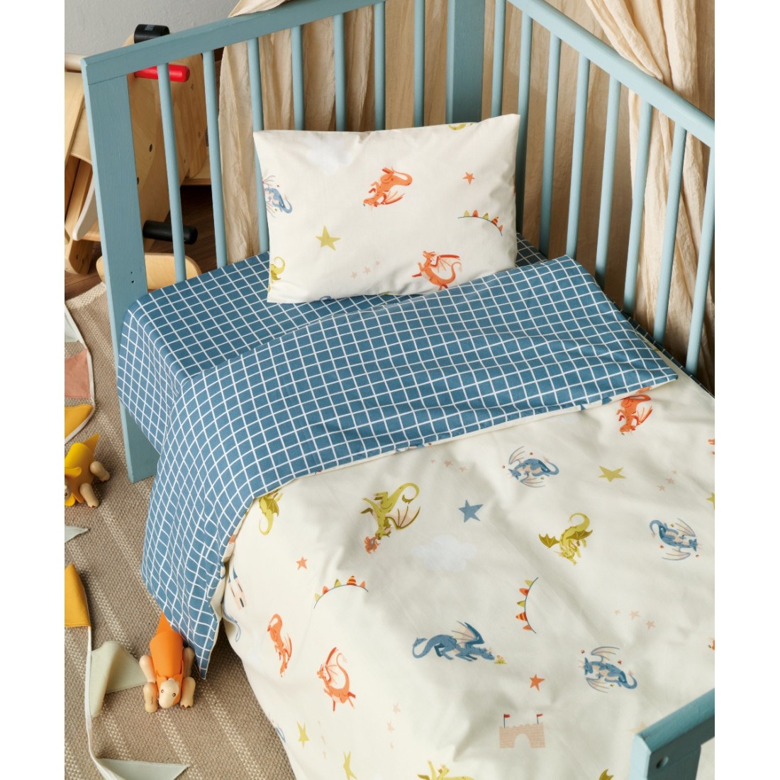 Η ποιότητα 150 κλωστών (150 TC) εξασφαλίζει ανθεκτικότητα στις συχνές πλύσεις και καθημερινή χρήση, διατηρώντας την απαλότητα του υφάσματος. Το σετ σεντόνια κούνιας 150TC συνδυάζει πρακτικότητα, ποιότητα και χαρούμενο εμπριμέ design.