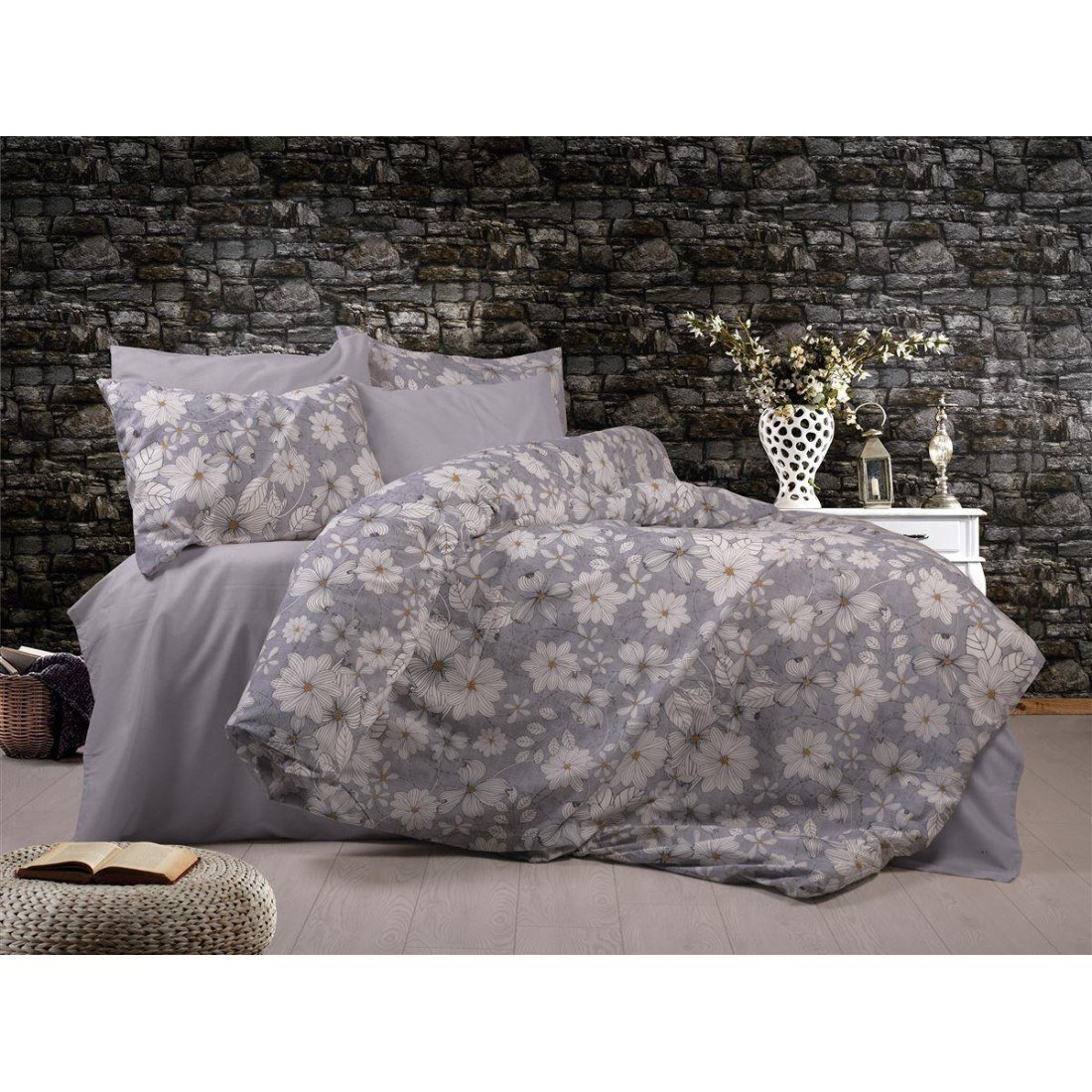 Σετ Σεντόνια Υπέρδιπλα 4 Τεμαχίων Dimcol Ήρα 426 220X240 Grey