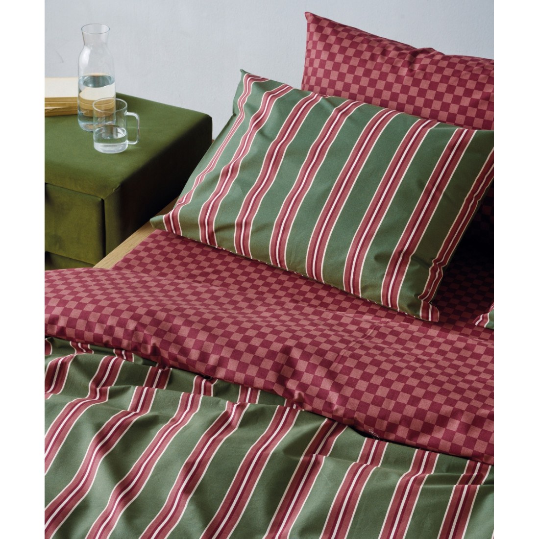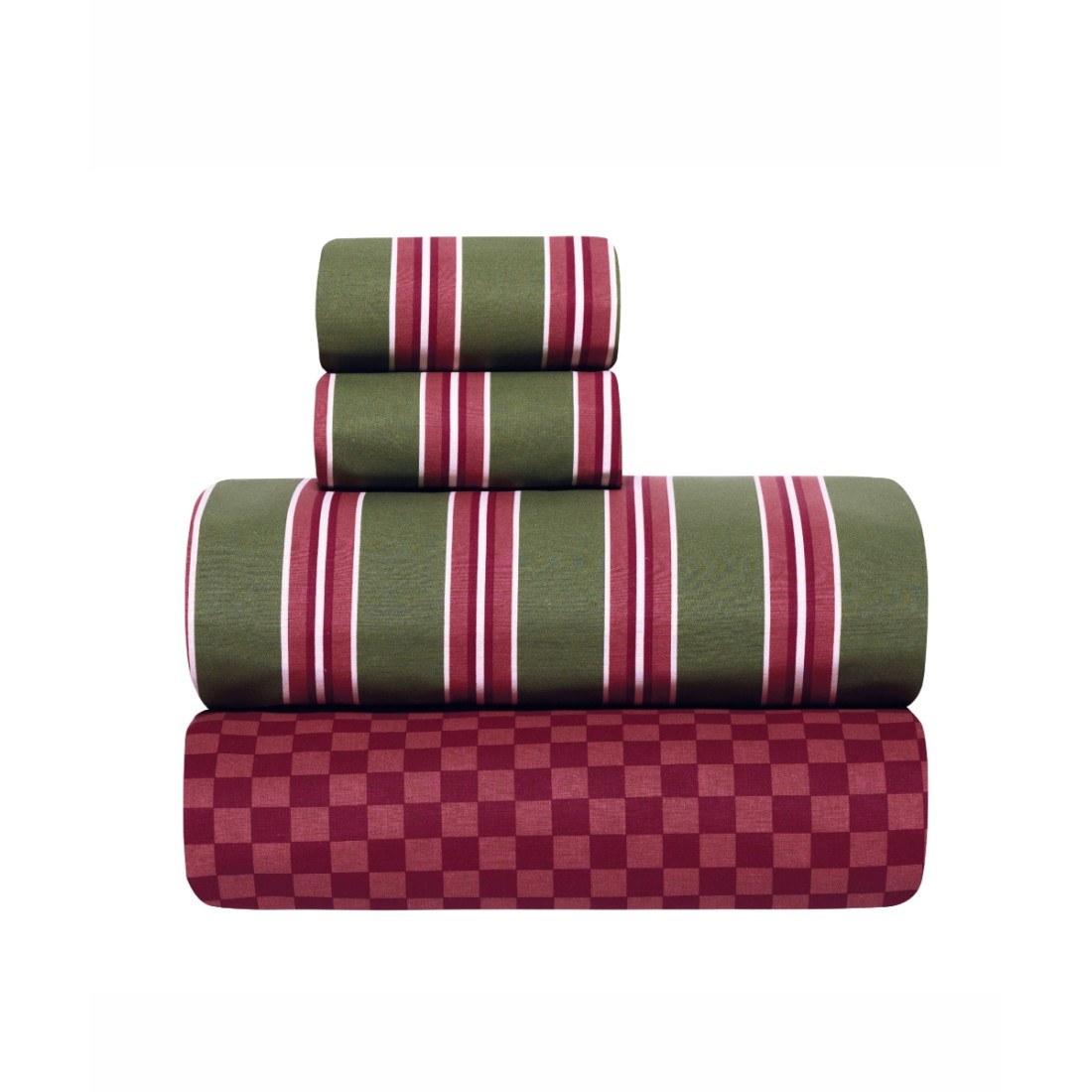 Το σετ υπέρδιπλων σεντονιών διαθέτει κομψό ριγέ σχέδιο σε αποχρώσεις green, old rose, bordeaux και white, προσδίδοντας ζωντάνια και διαχρονικό στυλ στο υπνοδωμάτιο.