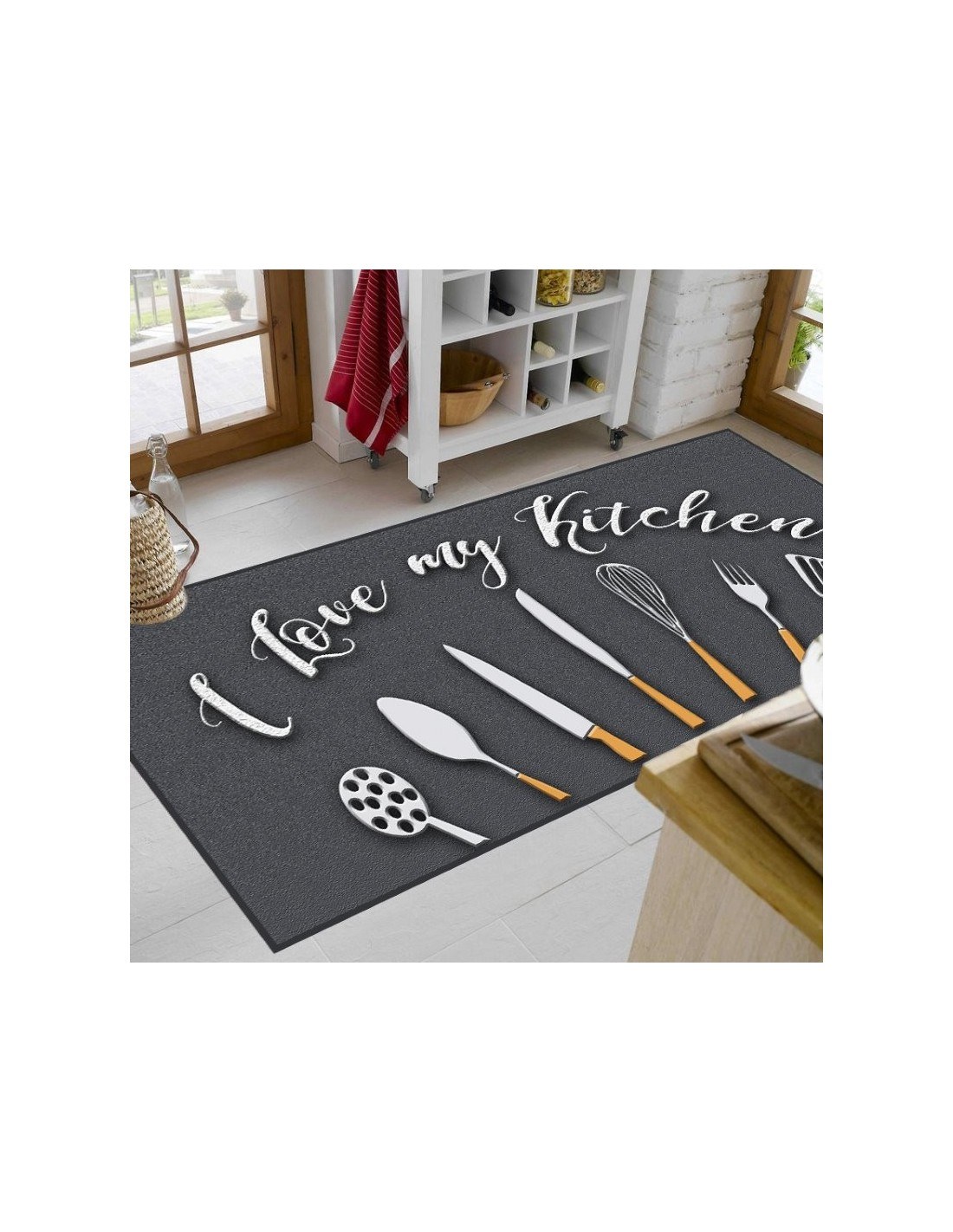 Χαλάκι Κουζίνας διαστάσεων 80x200, με αντιολισθητικό επίστρωμα Dots Backing και απεικόνιση μαγειρικών σκευών. Πρακτικό, ασφαλές, αλλά και διακοσμητικό για τη κουζίνα του σπιτιού σας.