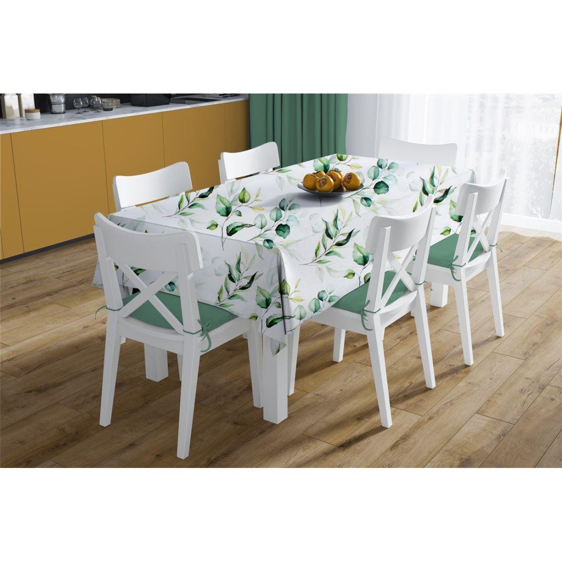Αλέκιαστο σετ 2 τεμαχίων που περιέχει: 1 τεμ. τραπεζομάντηλο διαστάσεων 140X300 cm και 1 τεμ. τραβέρσα διαστάσεων 40X300 cm. Κατασκευασμένο από ύφασμα Panama σύνθεσης 70% βαμβάκι - 30% πολυέστερ. με ψηφιακά εκτυπωμένο σχέδιο και ειδικό φινίρισμα στα νήματα. που το καθιστά μαλακό και αδιάβροχο. Απωθεί αποτελεσματικά τους λεκέδες. Πλένεται στους 30°C. στέγνωμα σε χαμηλές στροφές. Συσκευασία PVC bag. Κατασκευάζεται στην Ελλάδα.