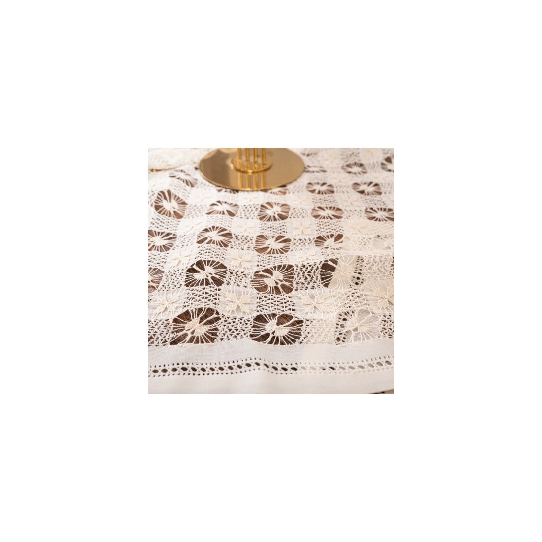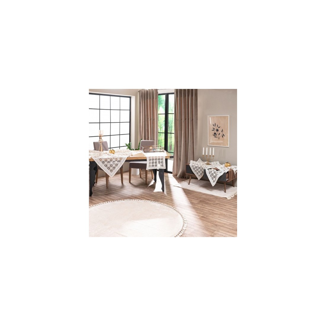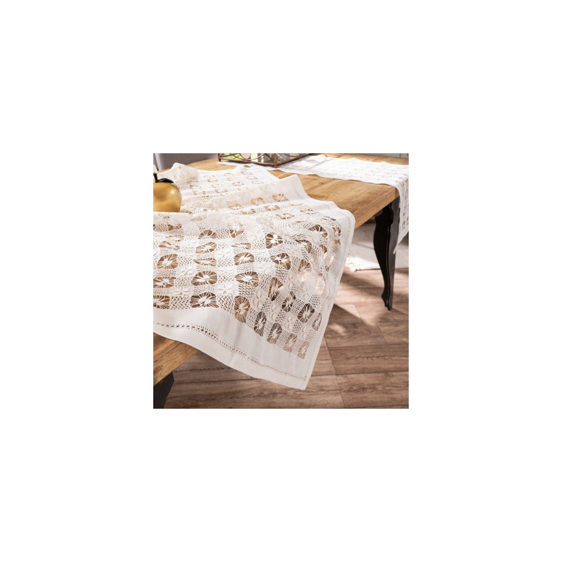 Διαστάσεις: καρέ 90x90, runner 40x160, τραπεζοκαρέ 135x135, 2 πετσετάκι 40x40