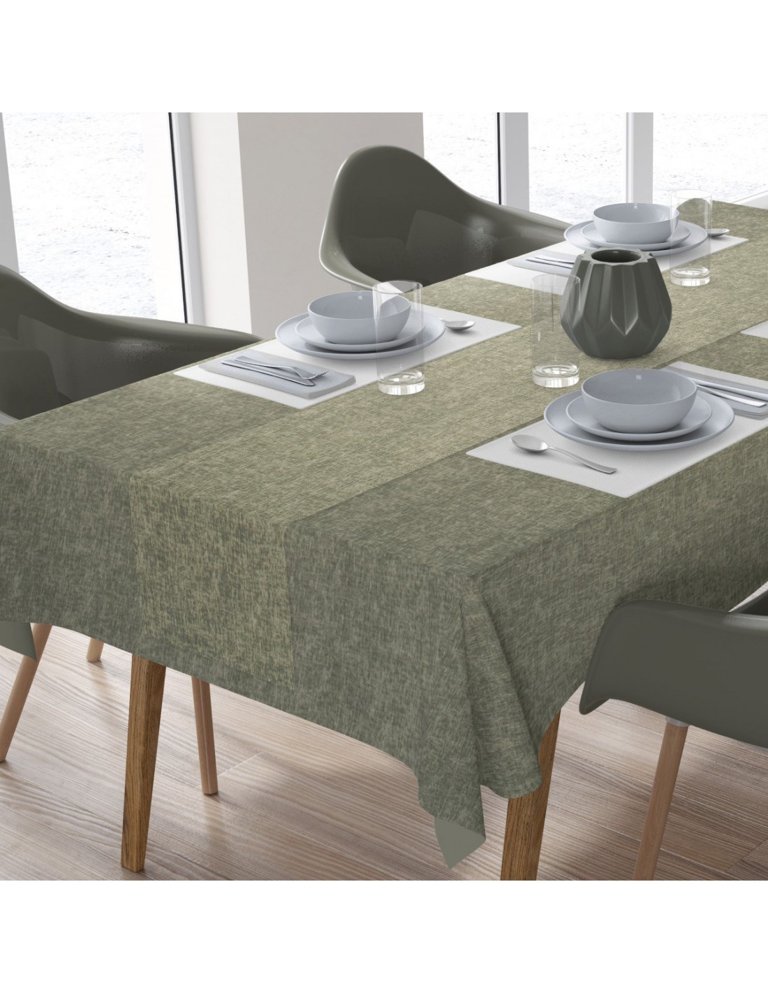 Σετ Αλέκιαστο τραπεζομάντηλο 140x140 και τραβέρσα 40x140 ύφανσης PANAMA με ειδικό φινίρισμα στα νήματα, που το καθιστά μαλακό και αδιάβροχο. Απωθεί αποτελεσματικά τους λεκέδες. Τυπωμένο με ανεξίτηλα ανθεκτικά χρώματα. Κατασκευασμένο από 70% βαμβάκι και 30% πολυέστερ.