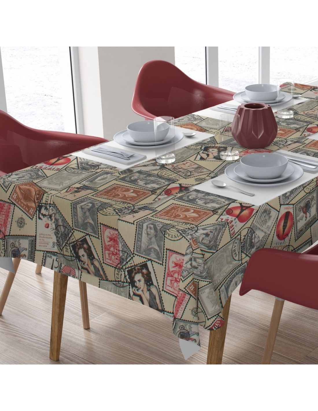Σετ Τραπεζομάντηλο και Runner Dimcol Vintage Post Stamps 482 Εκρού 140x140 & 40x140