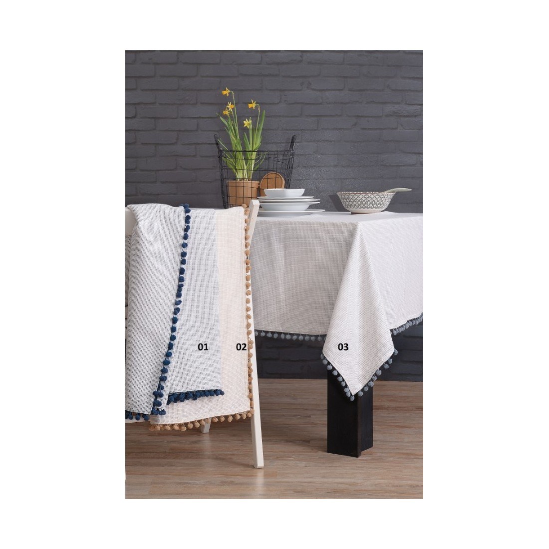 Τραπεζομάντηλο Rythmos Pom Pom Μπλε 140x180