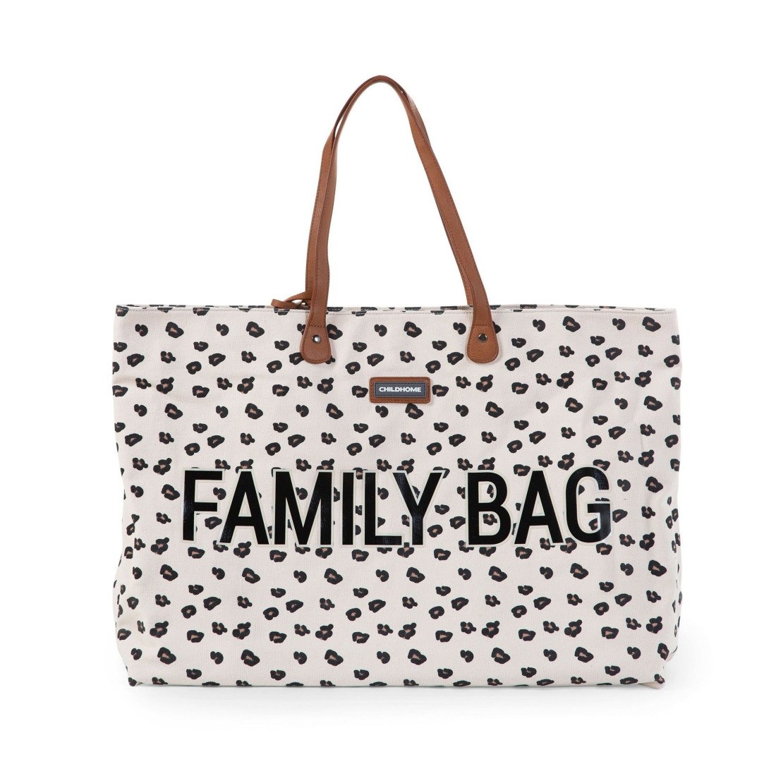 Τσάντα αλλαγής πάνας από την εταιρεία ChildHome με λεοπάρ σχέδιο. Το εξωτερικό ύφασμα είναι από 65% βαμβάκι και 35% polyester και λαβές από δερματίνη. Εσωτερικά είναι 100% Nylon και έχει τσέπη που κλείνει με φερμουάρ. Είναι ανθεκτική στο νερό ενω έχει μαγνητικό κλείσιμο για εύκολη πρόσβαση στο εσωτερικό της.