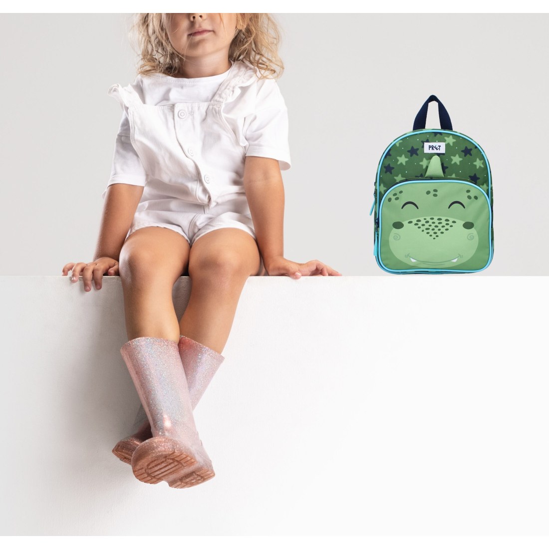 Αυτό το χαριτωμένο σακίδιο πλάτης της Prêt είναι ένα τέλειο αντικείμενο για μικρά παιδιά που αναζητούν ένα κομψό αντικείμενο με έναν χαριτωμένο χαρακτήρα πάνω του. Το σακίδιο είναι σκούρο πράσινο και έχει τυπωμένο το κεφάλι ενός μικρού δεινόσαυρου. Η ευρύχωρη κύρια θήκη είναι αρκετά μεγάλη για να μεταφέρετε όλα τα απαραίτητα αντικέιμενα μιάς εκδρομής ή μίας σχολικής μέρας. Επιπλέον, η ευρύχωρη μπροστινή τσέπη μπορεί να χρησιμοποιηθεί για την αποθήκευση έξτρα μικροαντικειμένων. Οι θήκες ανοίγουν με φερμουάρ και η πλάτη έχει ρυθμιζόμενους ιμάντες ώμου. Υλικό: 100% Πολυεστέρας.