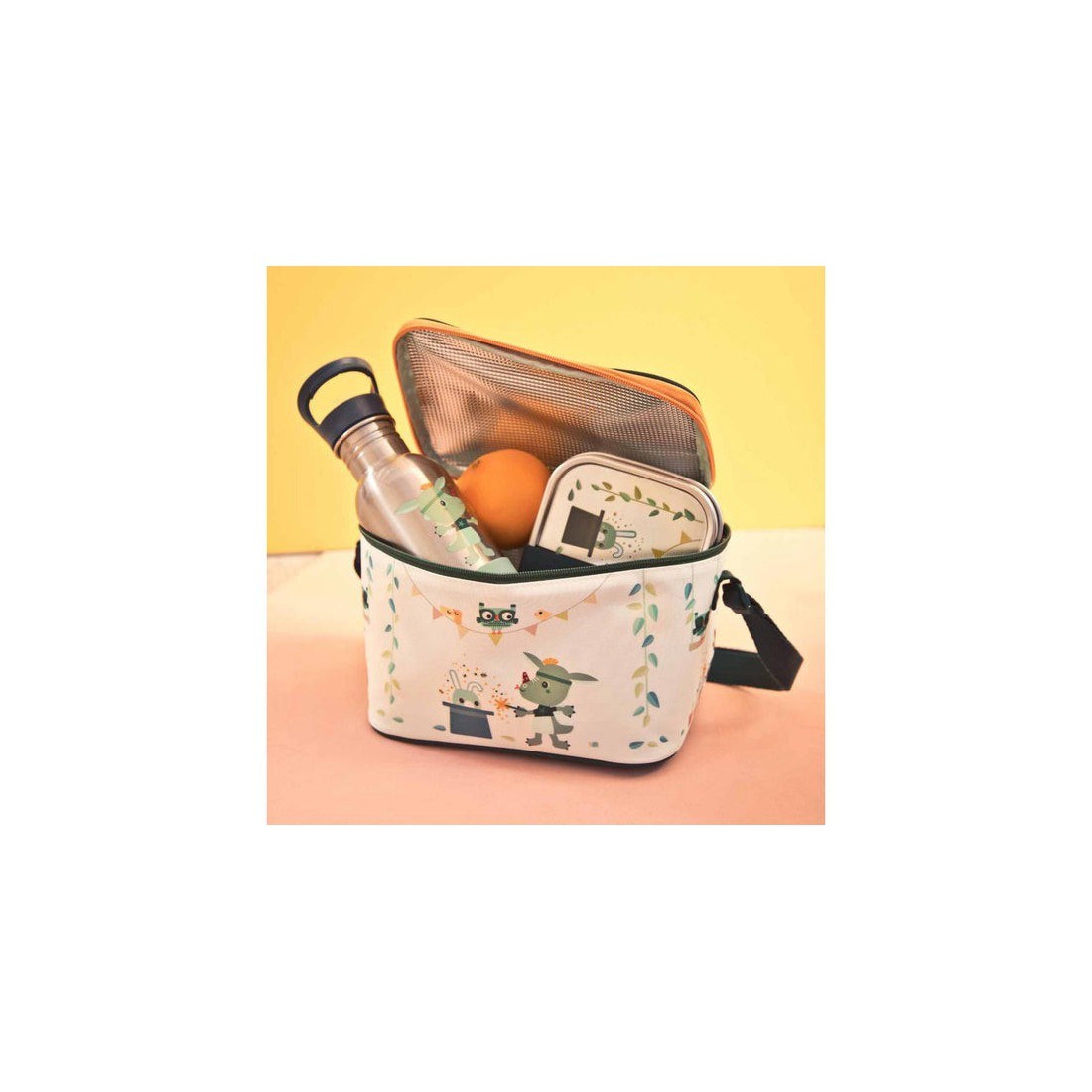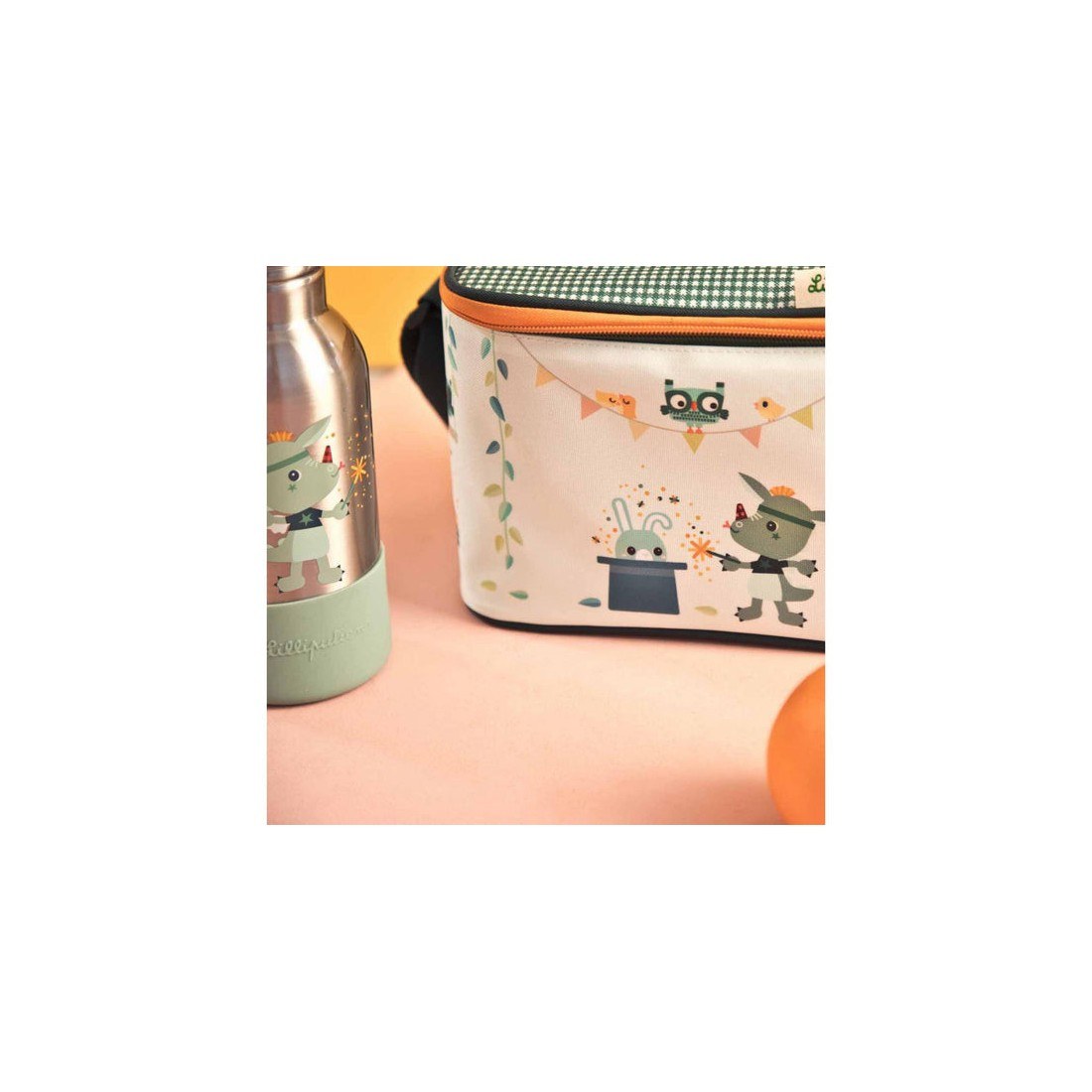 Tσαντάκι φαγητού σε πράσινες αποχρώσεις της Lilliputiens με τον Joe το δρακάκι με ισοθερμική επένδυση για να διατηρεί τη θερμοκρασία του φαγητού στο εσωτερικό του σταθερή