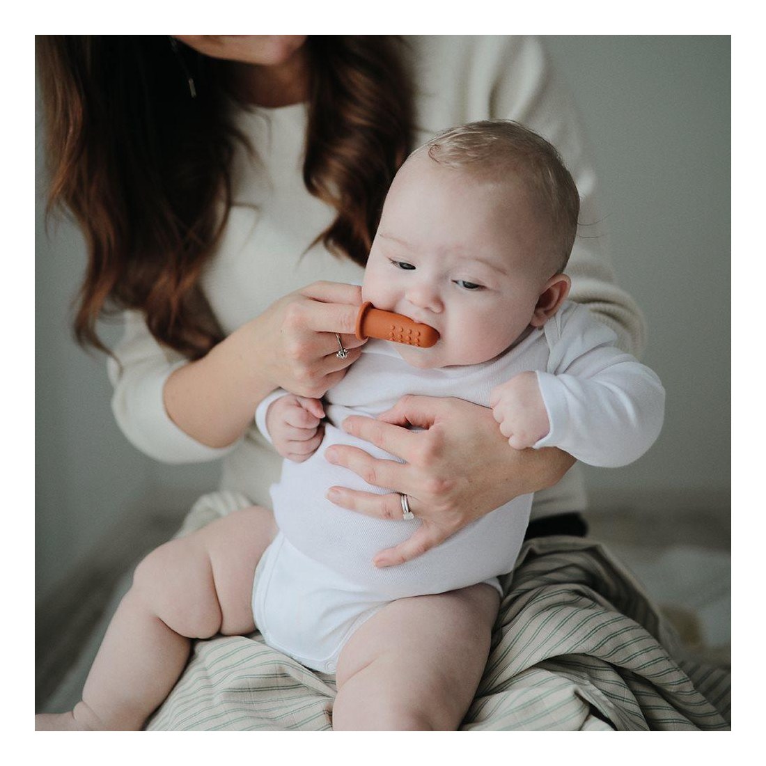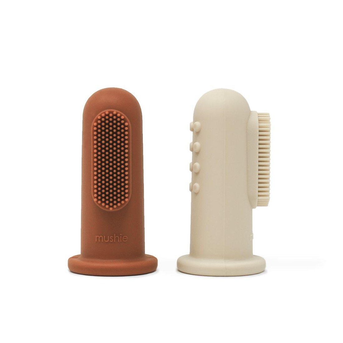 2 Βρεφικές Οδοντόβουρτσες Δακτύλου Σιλικόνης Clay/Shifting Sand - Mushie