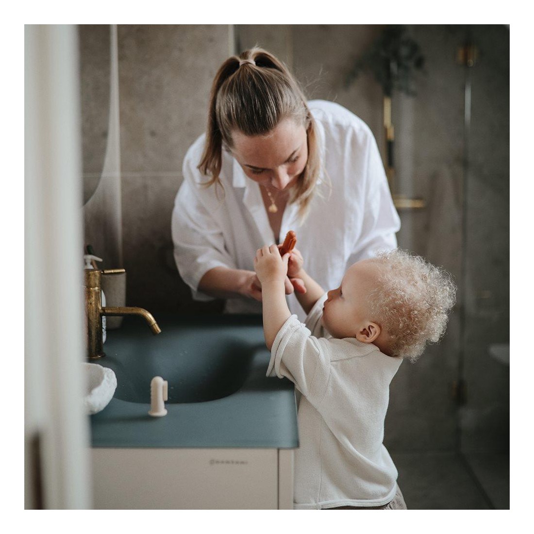 Απομακρύνετε όλα τα βακτήρια και τις ακαθαρσίες από τα ούλα του μωρού σας με μια οδοντόβουρτσα δακτύλου σιλικόνης από τη Mushie! Η πρώτη οδοντόβουρτσα ενός μικρού παιδιού, με την οποία μπορείτε να τρίψετε απαλά και με ασφάλεια τα ούλα και τα νεόφυτα δοντάκια του, αλλά και να το μάθετε να περιποιείται τον εαυτό του ανεξάρτητα. Οι προεξοχές στο πίσω μέρος της οδοντόβουρτσας βοηθούν στην ανακούφιση των ούλων κατά την περίοδο της οδοντοφϋίας. Κατασκευασμένη από σιλικόνη κατάλληλη για χρήση με τρόφιμα. Πλένεται στο χέρι με ζεστό νερό.