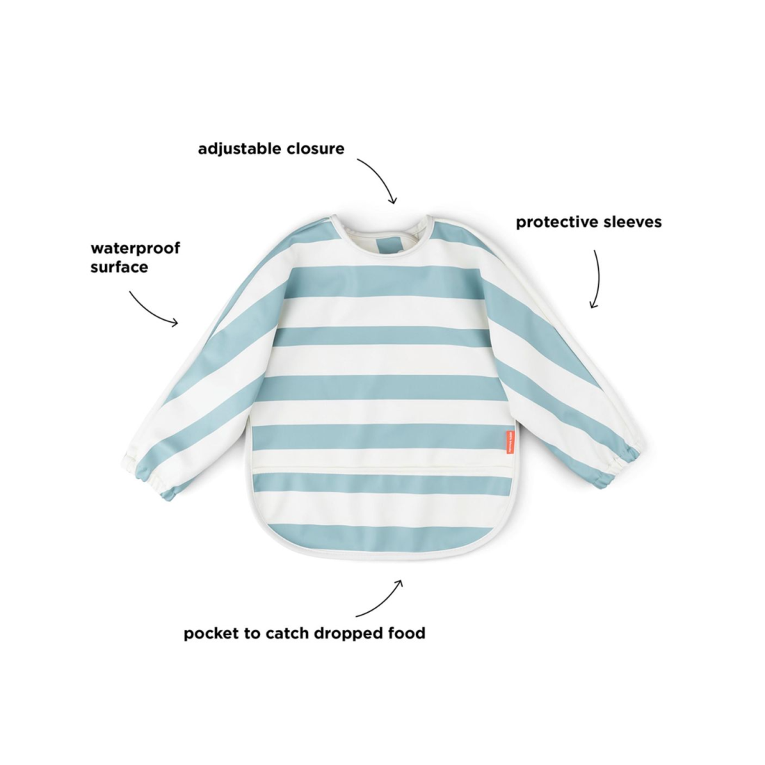 Αδιάβροχη και πρακτική, διαθέτει ελαστικά μανίκια και κλείσιμο με Velcro για εύκολη εφαρμογή και ασφάλεια. Η σαλιάρα καθαρίζεται πολύ εύκολα, ενώ είναι κατασκευασμένη από 100% PU με πίσω μέρος από πολυεστέρα, φέρει πιστοποίηση Oeko-Tex και είναι ασφαλής για το ευαίσθητο δέρμα του μωρού.