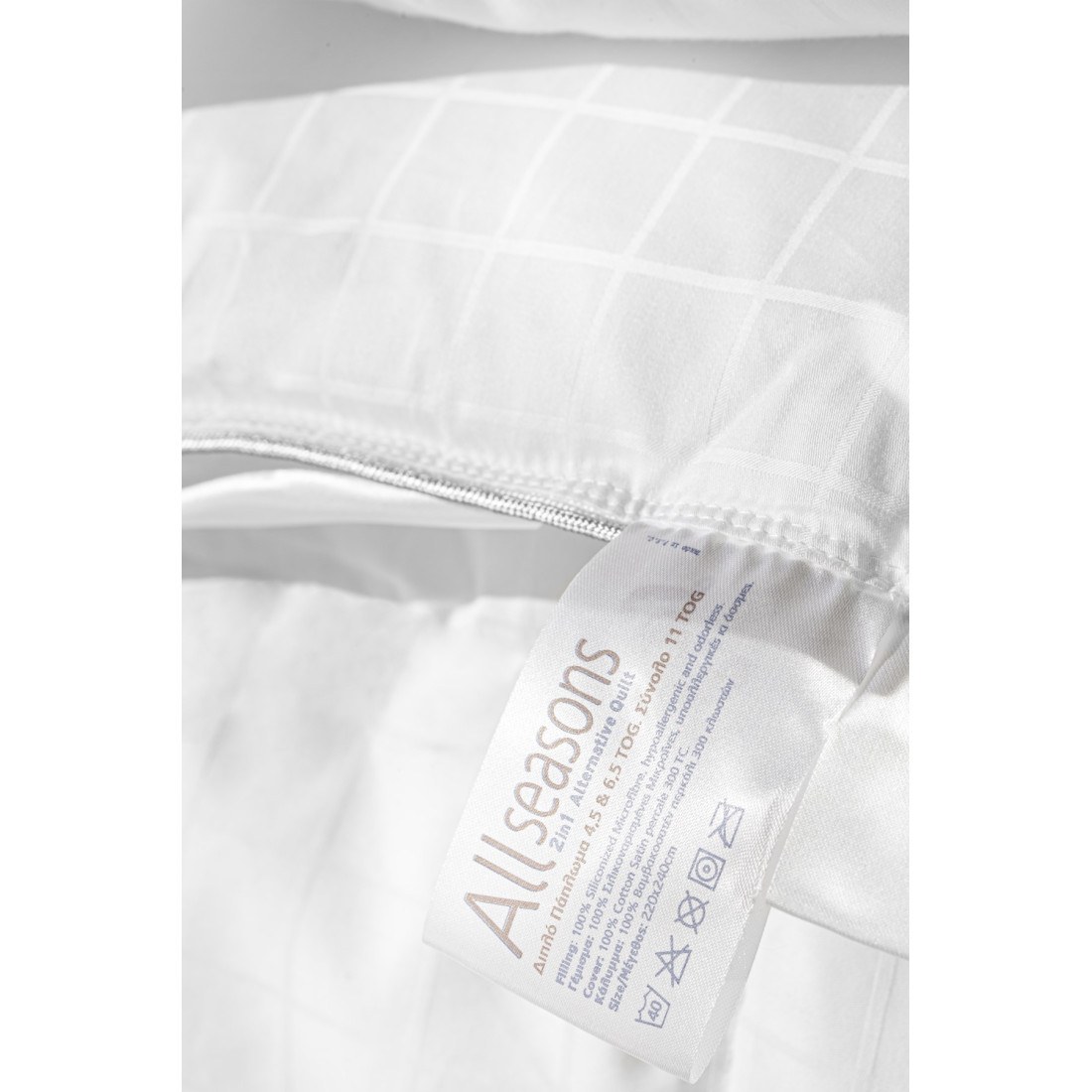 Δύο παπλώματα, ένα για κάθε εποχή ή και τα δύο μαζί για τις πιο κρύες νύχτες του χειμώνα. Τα ξεχωριστά παπλώματα με διαφορετικούς δείκτες θερμότητας (6,5 & 4,5 tog) σας δίνουν τη δυνατότητα να ρυθμίζετε τη θερμοκρασία που θέλετε στον ύπνο ανάλογα την εποχή. Πάπλωμα με πουπουλένια αίσθηση για αυτούς που έχουν αλλεργία στα πούπουλα.