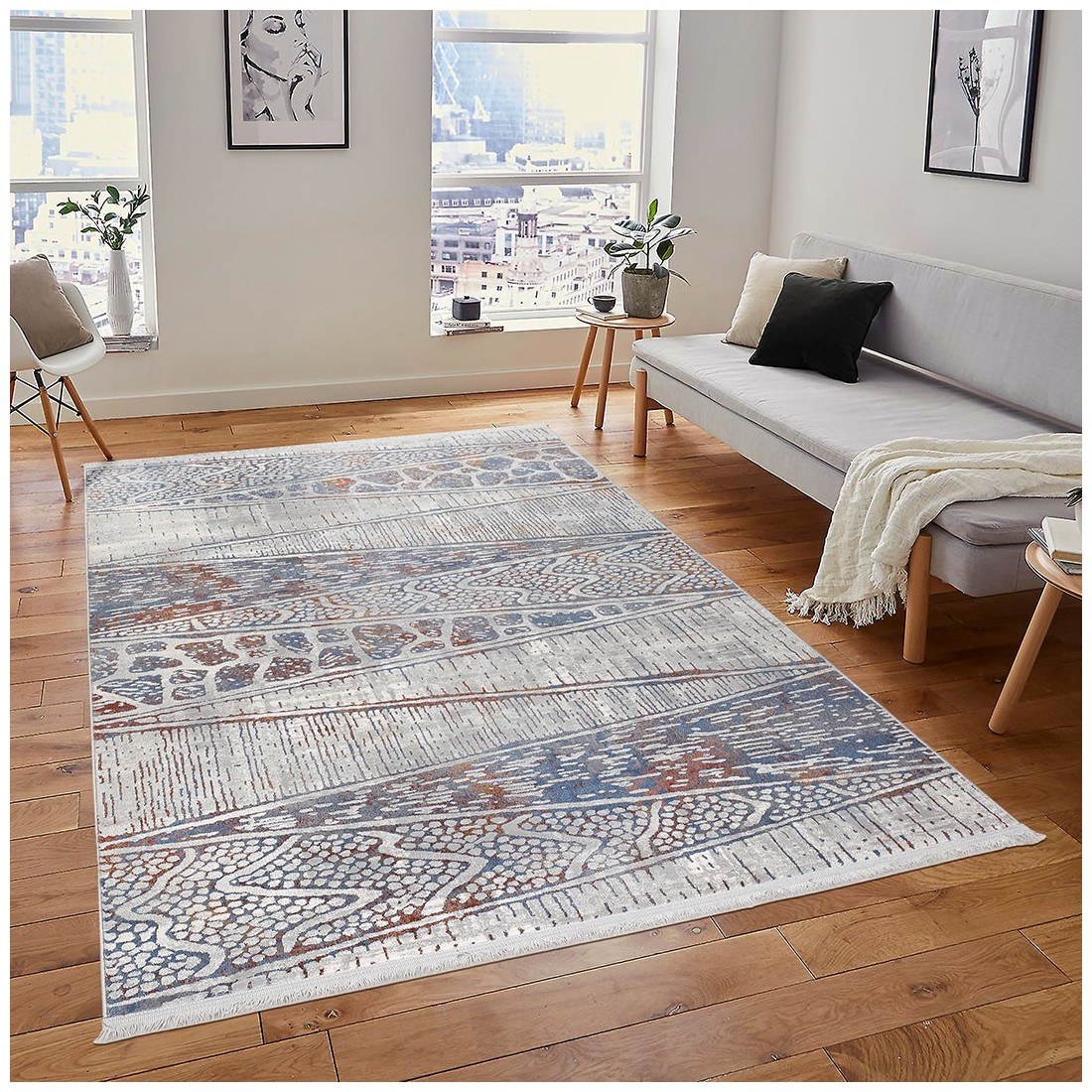 Η νέα σειρά Valencia έχει ως βάση το διαχρονικό γκρι-ασημί και το συνδυάζει με υπέροχες ανάγλυφες πινελιές σε αποχρώσεις του χαλκού, του γαλάζιου, του κίτρινου και του ροζ, προσδίδοντας έναν ιδιαίτερα μοντέρνο χαρακτήρα στον χώρο σας. Στις διαστάσεις χαλιού διατίθεται με γκρι κρόσσια.