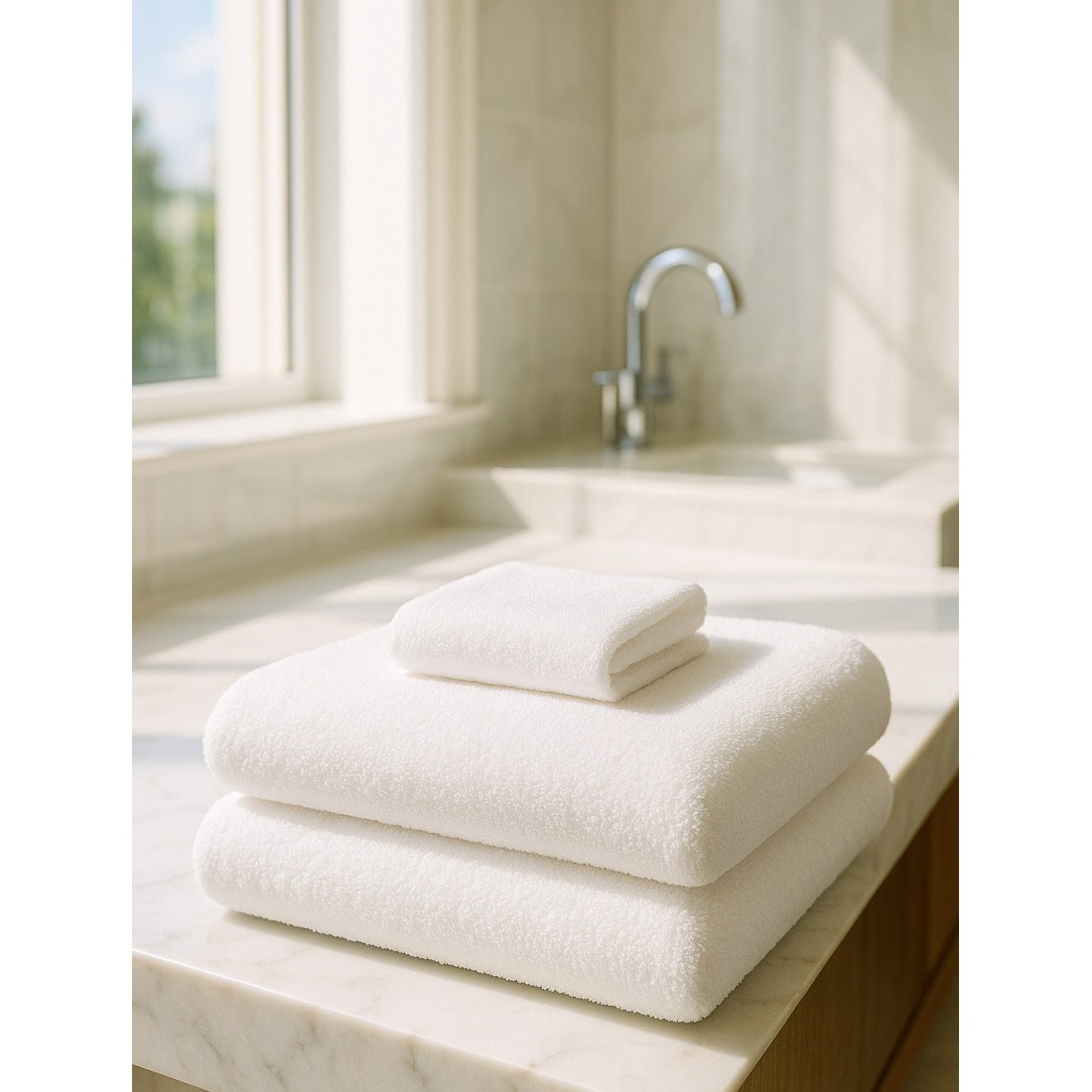 Λευκή πολυτέλεια… σε τιμή έκπληξη! Ανακάλυψε τη νέα μας συλλογή με λευκές πετσέτες προσώπου μπάνιου. κατασκευασμένες από απαλό βαμβάκι και διπλό γαζί για έξτρα ανθεκτικότητα και κομψότητα. Κλασικό λευκό που ταιριάζει σε κάθε μπάνιο. με υπέροχη αίσθηση φρεσκάδας και καθαριότητας.Πολύ οικονομικές. χωρίς να κάνουν εκπτώσεις στην ποιότητα — ιδανικές για ξενοδοχεία και καταλύματα.Μαλακές. Απορροφητικές. Ανθεκτικές. "Nothing feels fresher than a crisp white towel after a long day."