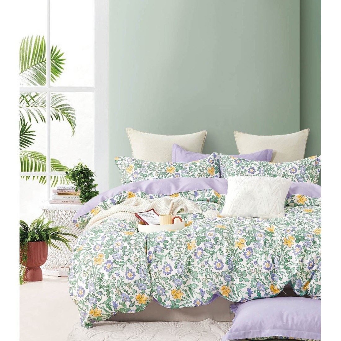 Ένα μοναδικό σετ υπέρδιπλων σεντονιών. με φλοράλ μοτίβο. Το κατωσέντονο έχει λιλά χρώμα. ενώ το πανωσέντονο έχει μοβ και κίτρινα λουλούδια με πράσινες λεπτομέρειες. Είναι κατασκευασμένα από 100% βαμβακοσατέν 200 κλωστών με νήματα πενιέ. που τα καθιστά εξαιρετικά μαλακά για τον τέλειο ύπνο. αλλά και ανθεκτικά και εύκολα στο σιδέρωμα. Η ποιότητα και το υπέροχο σχέδιο τους θα δώσουν στην κρεβατοκάμαρά σας ένα ξεχωριστό στυλ. Στο σετ περιλαμβάνονται και δύο μαξιλαροθήκες τύπου oxford διπλής όψης. *Το σχέδιο στις μαξιλαροθήκες ενδέχεται να διαφέρει από αυτό της φωτογραφίας. καθώς η εταιρεία παράγει μαξιλαροθήκες από όλο το σχέδιο του υφάσματος και τις συσκευάζει με τυχαία σειρά. ** Συνδυάστε τα με τα υπόλοιπα είδη του ιδίου σετ για ένα ολοκληρωμένο αποτέλεσμα. ΦΡΟΝΤΙΔΑ/ ΟΔΗΓΙΕΣ ΠΛΥΣΗΣ Πλύσιμο σε μέγιστη θερμοκρασία νερού 40C. Απαγορεύεται η χρήση λευκαντικών ουσιών ή χλωρίνης.