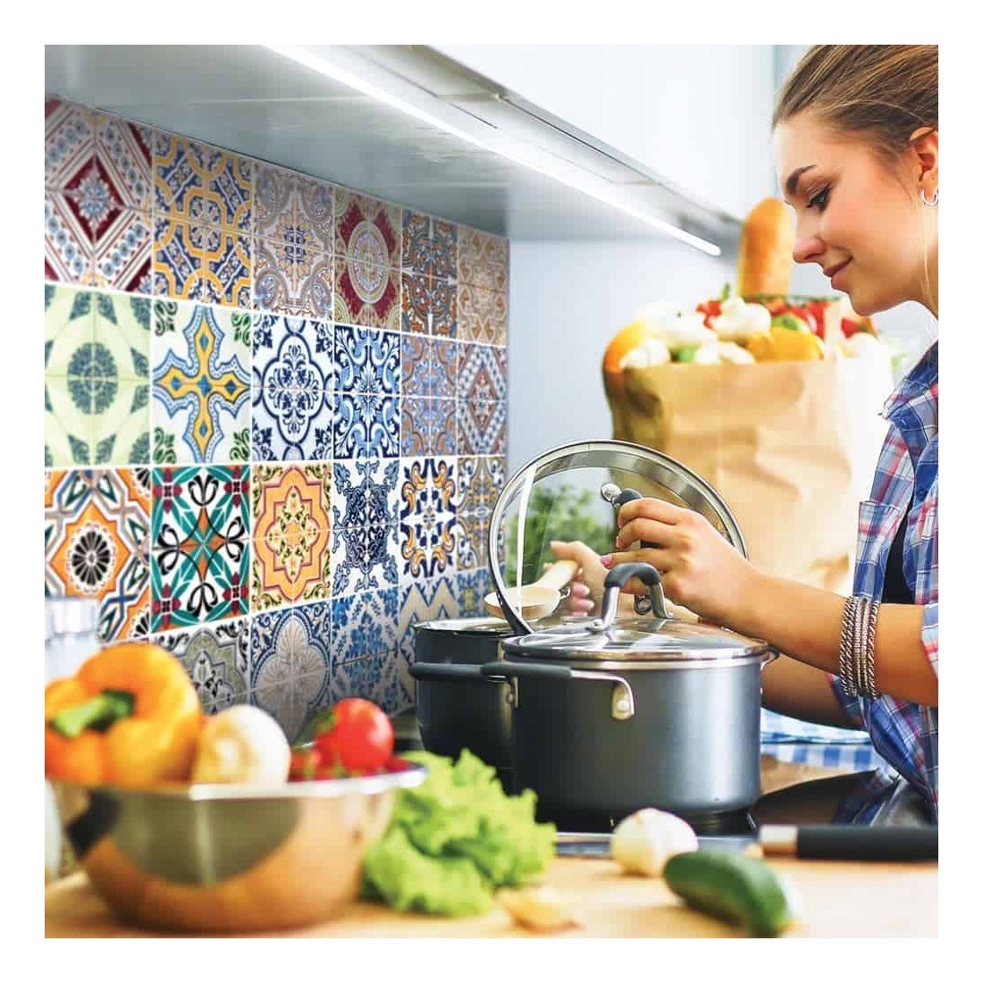 Azulejos L πλάτη προστασίας τοίχου εστιών κουζίνας από την ango Αυτοκόλλητος πίνακας – κάλυμμα ειδικά σχεδιασμένος για την προστασία των τοίχων από τις πιτσιλιές κατά το μαγείρεμα. Τοποθετείται στον τοίχο. πίσω από τις εστίες κουζίνας. Η Azulejos L πλάτη προστασίας τοίχου εστιών κουζίνας είναι κατασκευασμένη από καινοτόμο. μη τοξικό. πυρίμαχο υλικό (πιστοποίηση Μ1 Β1) τύπου PET. εύκολο στο καθάρισμα. Αυτοκόλλητη επίστρωση με ειδική μικροδομή εξασφαλίζει αποτέλεσμα χωρίς ζάρες ή φυσαλίδες. Προϊόν premium με μεγάλη διάρκεια ζωής. εύκολη εφαρμογή. ανθεκτικό σε υγρασία και θερμότητα. Διάσταση καλύμματος: 65 x 47 x 0.05 εκ. Αυτοκόλλητος πίνακας – κάλυμμα προστασίας – διακόσμησης τοίχων κουζίνας Πυρίμαχος. αδιάβροχος. ανθεκτικός από μη τοξικά υλικά Καινοτόμο υλικό τύπου PET (πιστοποιήσεις Μ1 Β1) Εύκολη τοποθέτηση. Τελικό αποτέλεσμα χωρίς ζάρες ή φυσαλίδες Εύκολο καθάρισμα με οικιακά καθαριστικά Διάσταση πίνακα: 65 x 47 x 0.05 εκ. Διάσταση συσκευασίας: 70 x 47.5 x 0.2 εκ. Ιταλική κατασκευή https://youtu.be/RxxjfFlWJ7Q