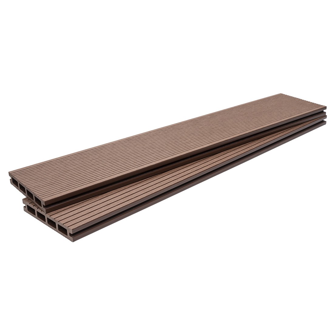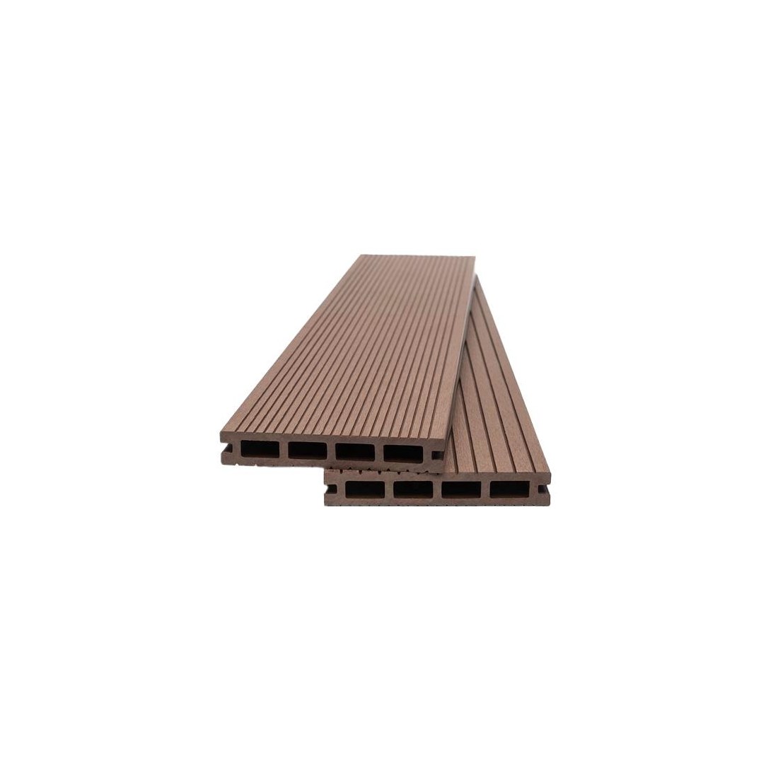 Συνθετικό δάπεδο Deck WPC εξωτερικού χώρου που αποτελείται από 55% ξύλο και 35% HDPE και 10% ρητίνες, UV σταθεροποιητές κλπ. Είναι διπλής όψης με στενό χτένι στη μία όψη και φαρδύ στην άλλη. Ιδανική επιλογή για πάτωμα πισίνας, βεράντας, εξωτερικούς χώρους καταστημάτων, κήπους, μαρίνες κλπ.
