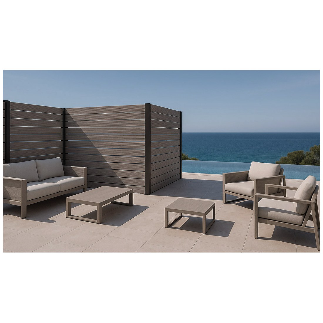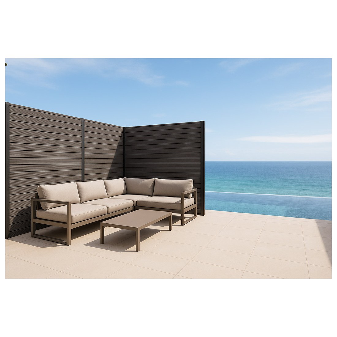 Συνθετικό Deck WPC περίφραξης εξωτερικού χώρου που αποτελείται από 55% ξύλο και 35% HDPE και 10% ρητίνες, UV σταθεροποιητές κλπ. Είναι διπλής όψης με στενό χτένι στη μία όψη και φαρδύ στην άλλη. Η περίφραξη με WPC έχει προσιτή τιμή και είναι κατάλληλη για πολλές εφαρμογές όπως περίφραξη οικοπέδου, κήπου ή πισίνας, εξωτερική περίφραξη, επένδυση τοίχου, φράχτη, αυλόπορτας κτλ.