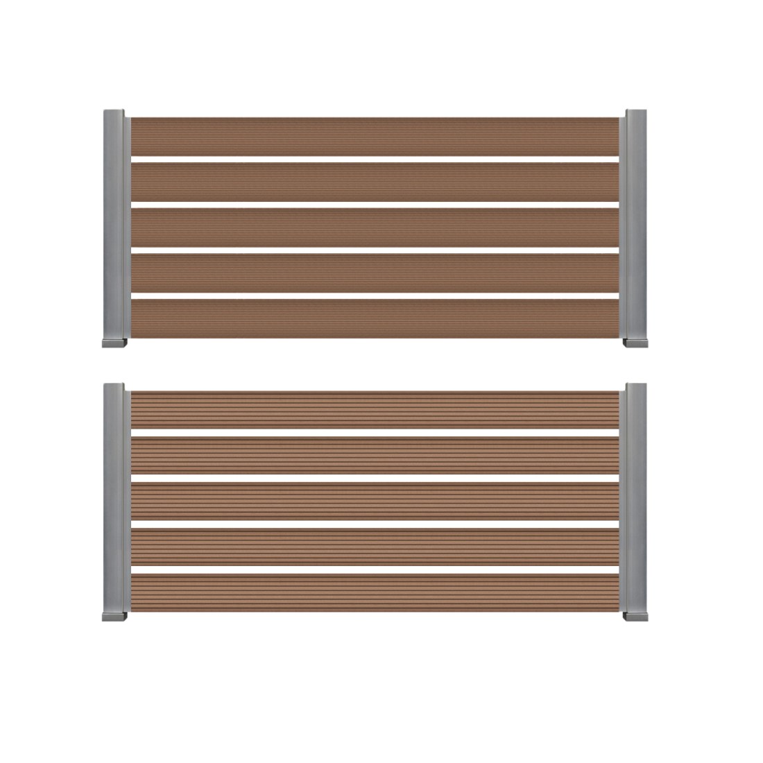 Συνθετικό Deck WPC περίφραξης εξωτερικού χώρου που αποτελείται από 55% ξύλο και 35% HDPE και 10% ρητίνες, UV σταθεροποιητές κλπ. Είναι διπλής όψης με στενό χτένι στη μία όψη και φαρδύ στην άλλη. Η περίφραξη με WPC έχει προσιτή τιμή και είναι κατάλληλη για πολλές εφαρμογές όπως περίφραξη οικοπέδου, κήπου ή πισίνας, εξωτερική περίφραξη, επένδυση τοίχου, φράχτη, αυλόπορτας κτλ.