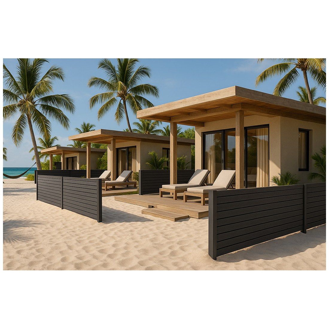 Συνθετικό Deck WPC περίφραξης εξωτερικού χώρου που αποτελείται από 55% ξύλο και 35% HDPE και 10% ρητίνες, UV σταθεροποιητές κλπ. Είναι διπλής όψης με στενό χτένι στη μία όψη και φαρδύ στην άλλη. Η περίφραξη με WPC έχει προσιτή τιμή και είναι κατάλληλη για πολλές εφαρμογές όπως περίφραξη οικοπέδου, κήπου ή πισίνας, εξωτερική περίφραξη, επένδυση τοίχου, φράχτη, αυλόπορτας κτλ.