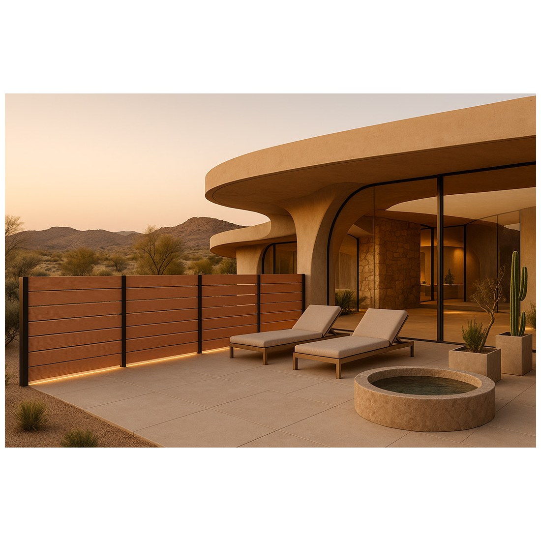 Συνθετικό Deck WPC περίφραξης εξωτερικού χώρου που αποτελείται από 55% ξύλο και 35% HDPE και 10% ρητίνες, UV σταθεροποιητές κλπ. Είναι διπλής όψης με στενό χτένι στη μία όψη και φαρδύ στην άλλη. Η περίφραξη με WPC έχει προσιτή τιμή και είναι κατάλληλη για πολλές εφαρμογές όπως περίφραξη οικοπέδου, κήπου ή πισίνας, εξωτερική περίφραξη, επένδυση τοίχου, φράχτη, αυλόπορτας κτλ.