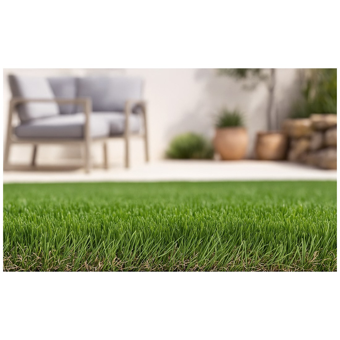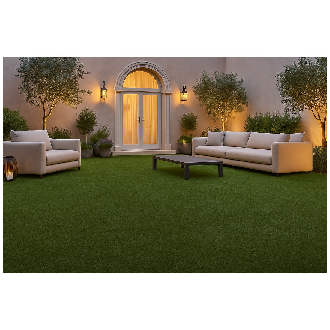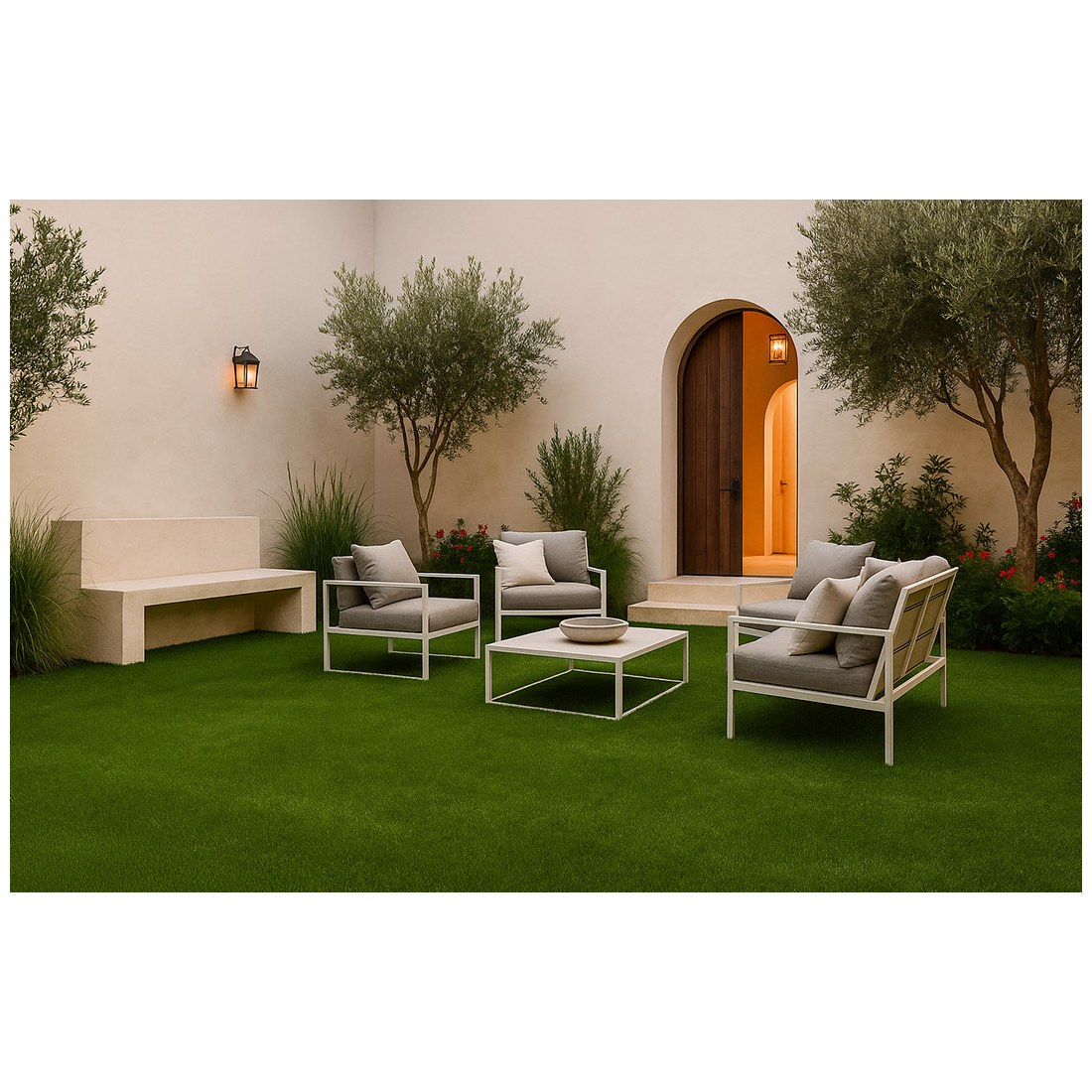 Συνθετικό γκαζόν Kythnos 35mm για εξωτερικό χώρο, κατάλληλο για βεράντες, προσόψεις καταστημάτων, κήπους, αυλές, παιδότοπους, σχολεία, περιβάλλοντες χώρους πισίνας, beach bar, roof gardens κ.α. Αποτελείται από ίσια πράσινη μονόκλωνη ίνα πολυαιθυλενίου και σγουρή μπεζ ίνα πολυπροπυλενίου.
