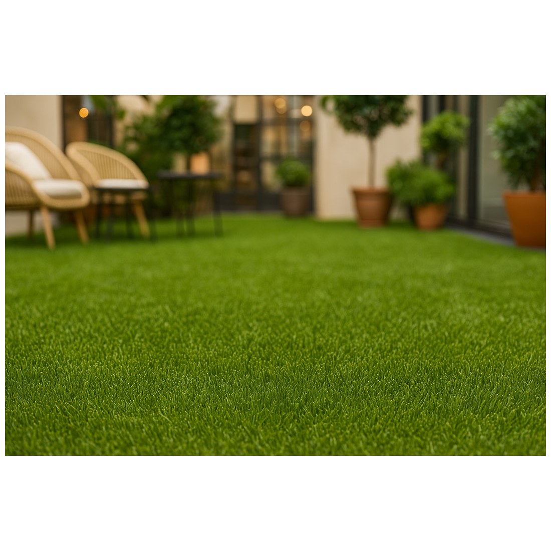Συνθετικό γκαζόν Leros 30mm για εξωτερικό χώρο, κατάλληλο για βεράντες, προσόψεις καταστημάτων, κήπους, αυλές, παιδότοπους, σχολεία, περιβάλλοντες χώρους πισίνας, beach bar, roof gardens κ.α. Αποτελείται από ίσια πράσινη μονόκλωνη ίνα πολυαιθυλενίου και σγουρή πράσινη ίνα πολυπροπυλενίου.