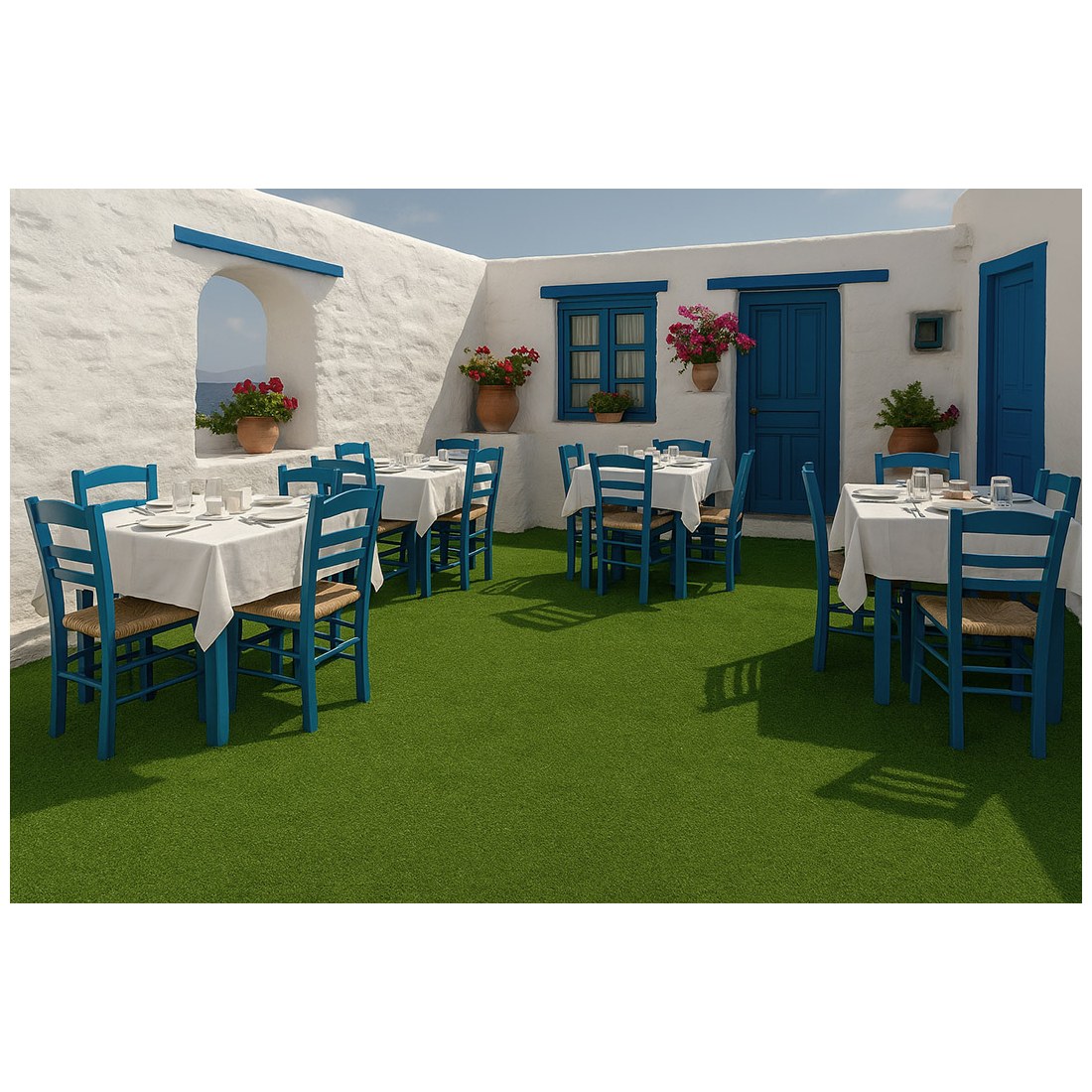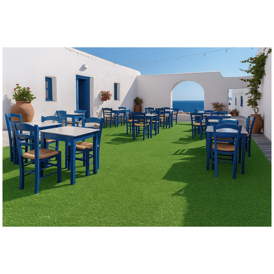 Συνθετικό γκαζόν Malta 9mm σε πολύ προσιτή τιμή για εξωτερικό χώρο, κατάλληλο για βεράντες, προσόψεις καταστημάτων, κήπους, αυλές, παιδότοπους, σχολεία, περιβάλλοντες χώρους πισίνας, beach bar, roof gardens κ.α. Αποτελείται από ίσια πράσινη μονόκλωνη ίνα πολυπροπυλενίου με πολύ πυκνή πλέξη.