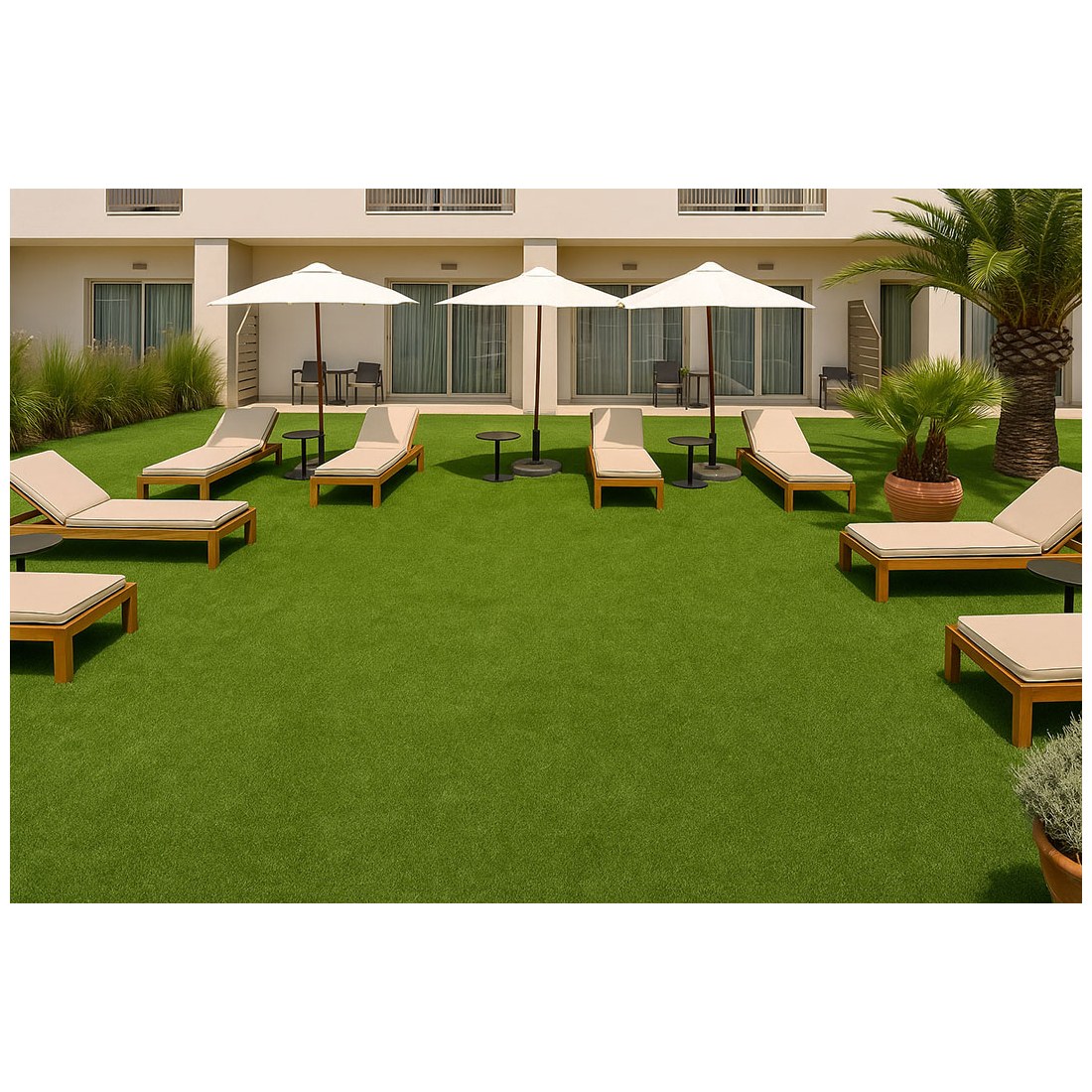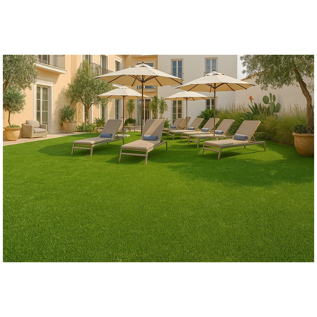 Συνθετικό γκαζόν Napoli 18mm σε πολύ προσιτή τιμή για εξωτερικό χώρο, κατάλληλο για βεράντες, προσόψεις καταστημάτων, κήπους, αυλές, παιδότοπους, σχολεία, περιβάλλοντες χώρους πισίνας, beach bar, roof gardens κ.α. Αποτελείται από πράσινη μονόκλωνη ίνα πολυαιθυλενίου και σγουρή μπεζ ίνα πολυπροπυλενίου.