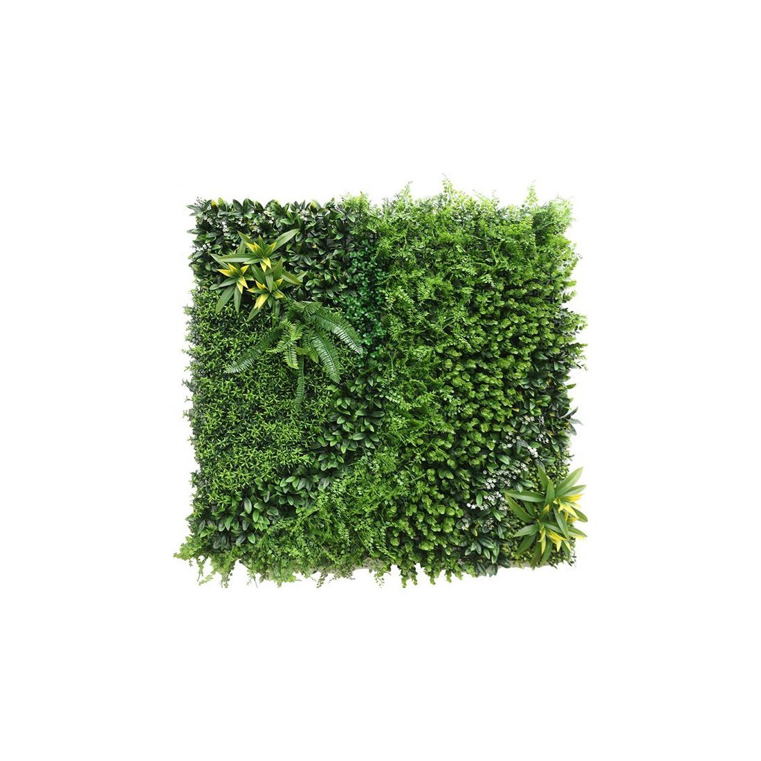 Συνθετικό διακοσμητικό πάνελ με πυκνή φυλλωσιά, σε πλακίδιο 1m x 1m. Έχει τρισδιάστατη όψη και δίνει μια αίσθηση ζωντάνιας και φυσικότητας στον χώρο σας. Διακοσμήστε τον εξωτερικό ή εσωτερικό χώρο σας με τα πάνελ φυλλωσιάς και δημιουργήστε έναν μοναδικό κάθετο κήπο.